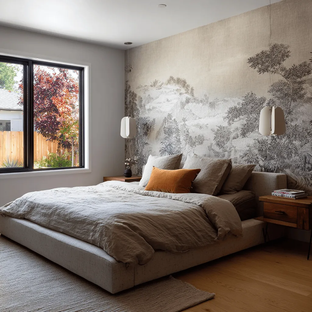 When the wall is the identity, tall furniture silhouettes can interrupt the story. That is why modern headboard alternatives lean on a modest head element or none at all, paired with a strong background idea.