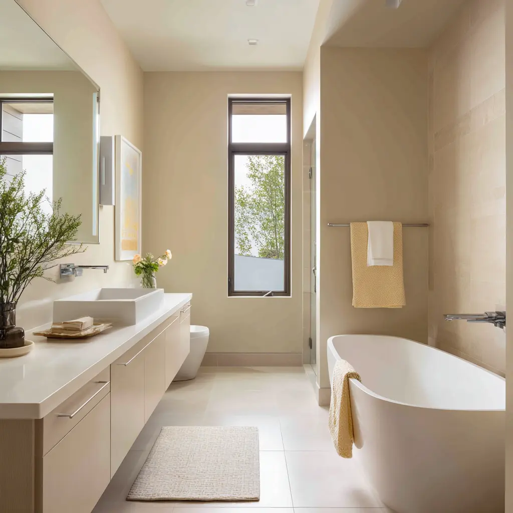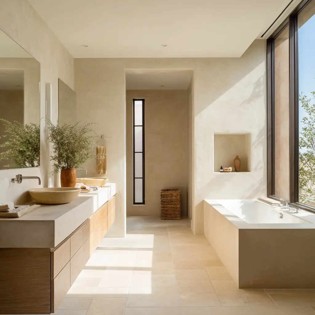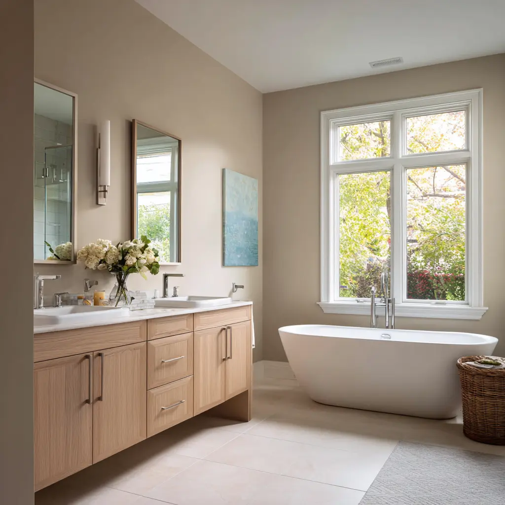 This color family works well for anyone who wants a bathroom that feels restful, warm, and refined without obvious drama. It is especially useful for readers who like neutrals but want to avoid a plain or builder-basic look.