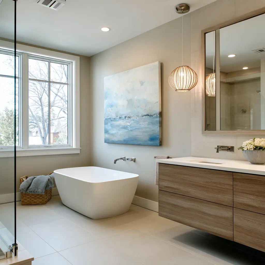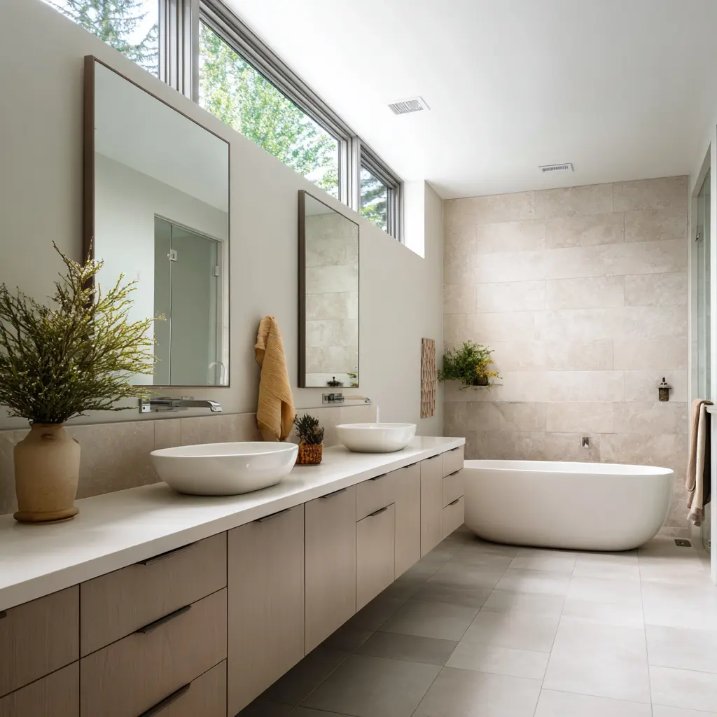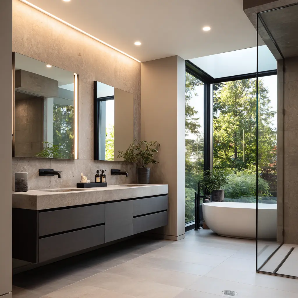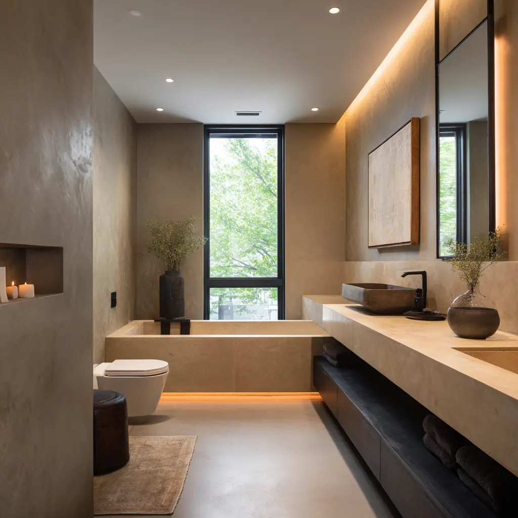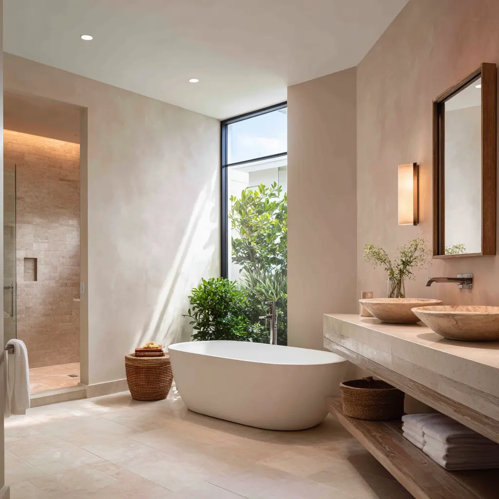Today’s bathroom designs begin with a soft warm shell, rely on low-contrast depth, use light as part of the palette, borrow freshness from nature, and keep stronger color controlled and deliberate. The result is a bathroom design that feels human, polished, and current without becoming harsh, cold, or tiring.