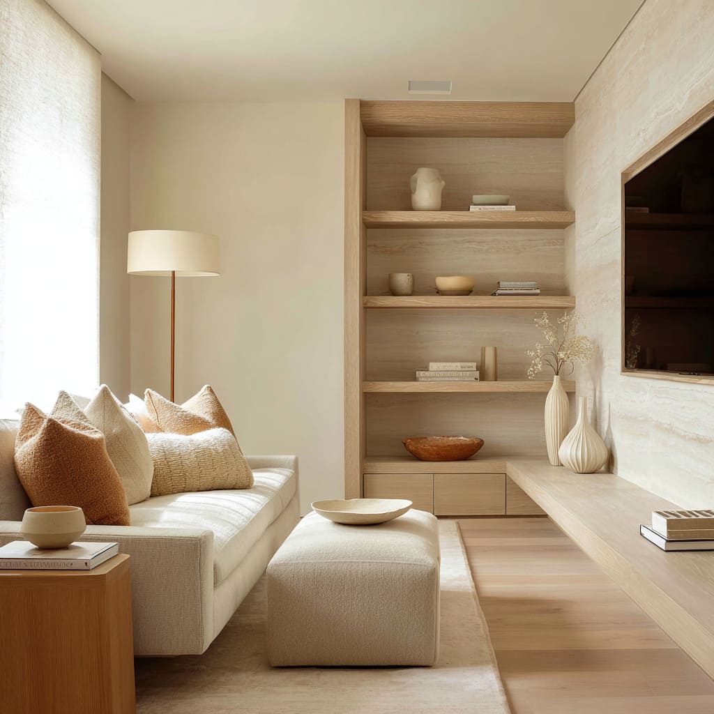 Taken together, sand color living room design ideas often based on a very high level of control: color is almost flattened, so texture, shape, light, and layout do most of the expressive work. That’s why such designs feel rich and layered even though casual observers might say “it’s all neutral.