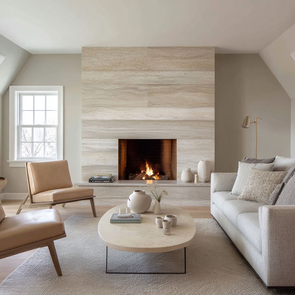 - As fireplace surround: it becomes the main “pattern” in the room while still reading as neutral.