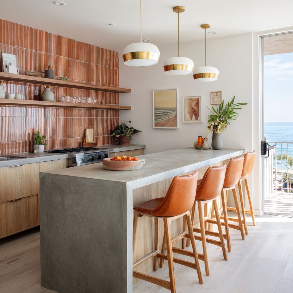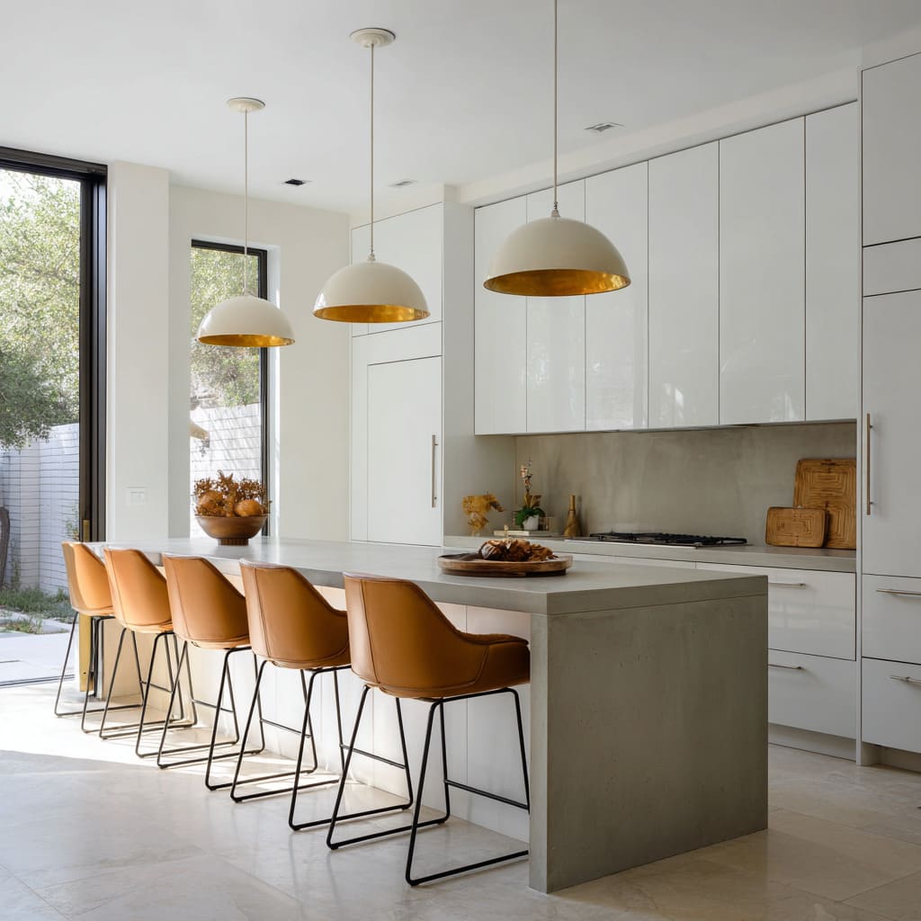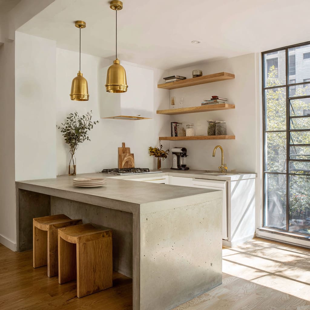 These are the kinds of cool concrete countertop ideas that feel confident because concrete isn’t fighting for attention—it’s organizing the interior design.