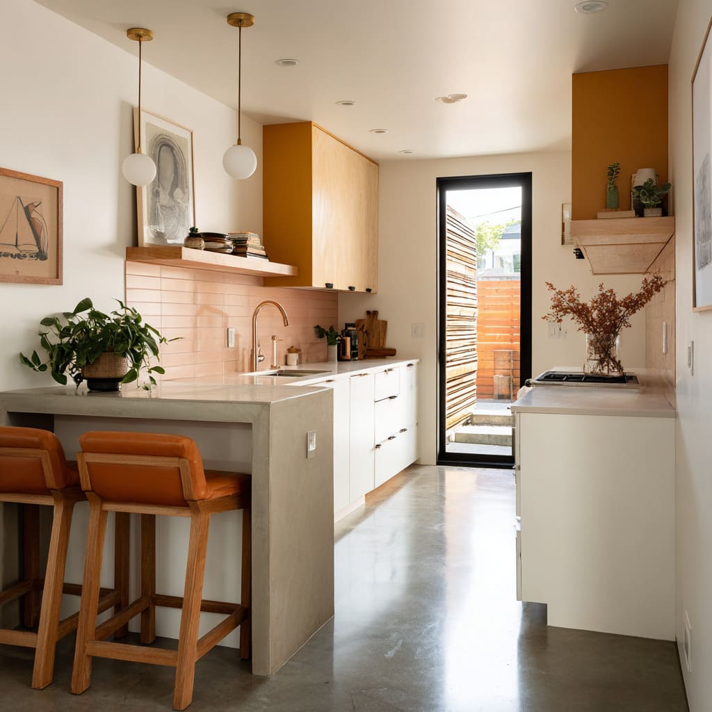 - Use greenery where it matters: at the end of a run, near the sink, or near a window to soften hard geometry.