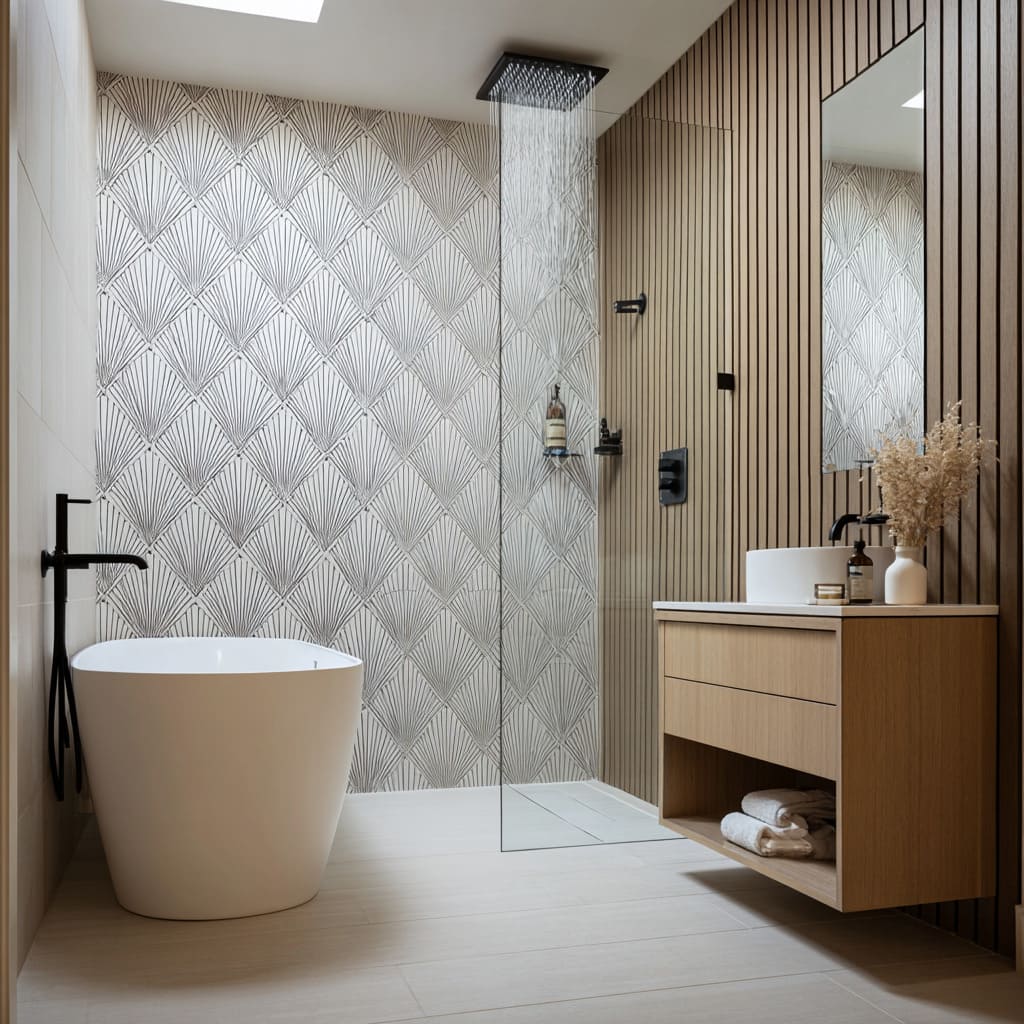 These shapes form the expressive side of bathroom tile inspiration, giving focal areas a signature identity without using loud tones.