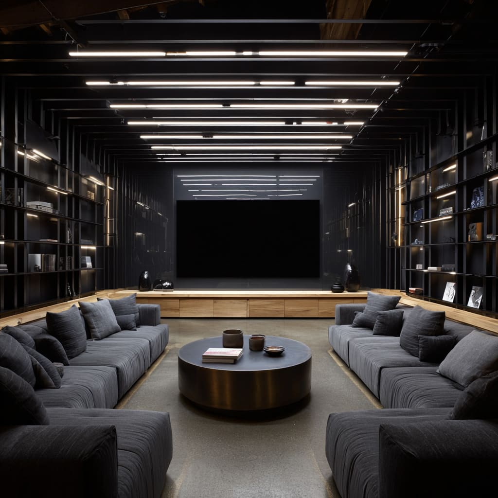 These elements contribute to the enveloping warmth and cohesion typical of refined dark lounge room design, allowing darkness to feel intimate rather than heavy.