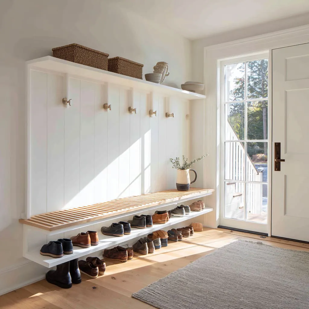 A small entry can look messy fast, and it’s usually not because you own too many shoes. It’s because the space has no clear limit, no clear wet first spot, and no place for the extra things that arrive with you: keys, mail, dog leash, kids gear.