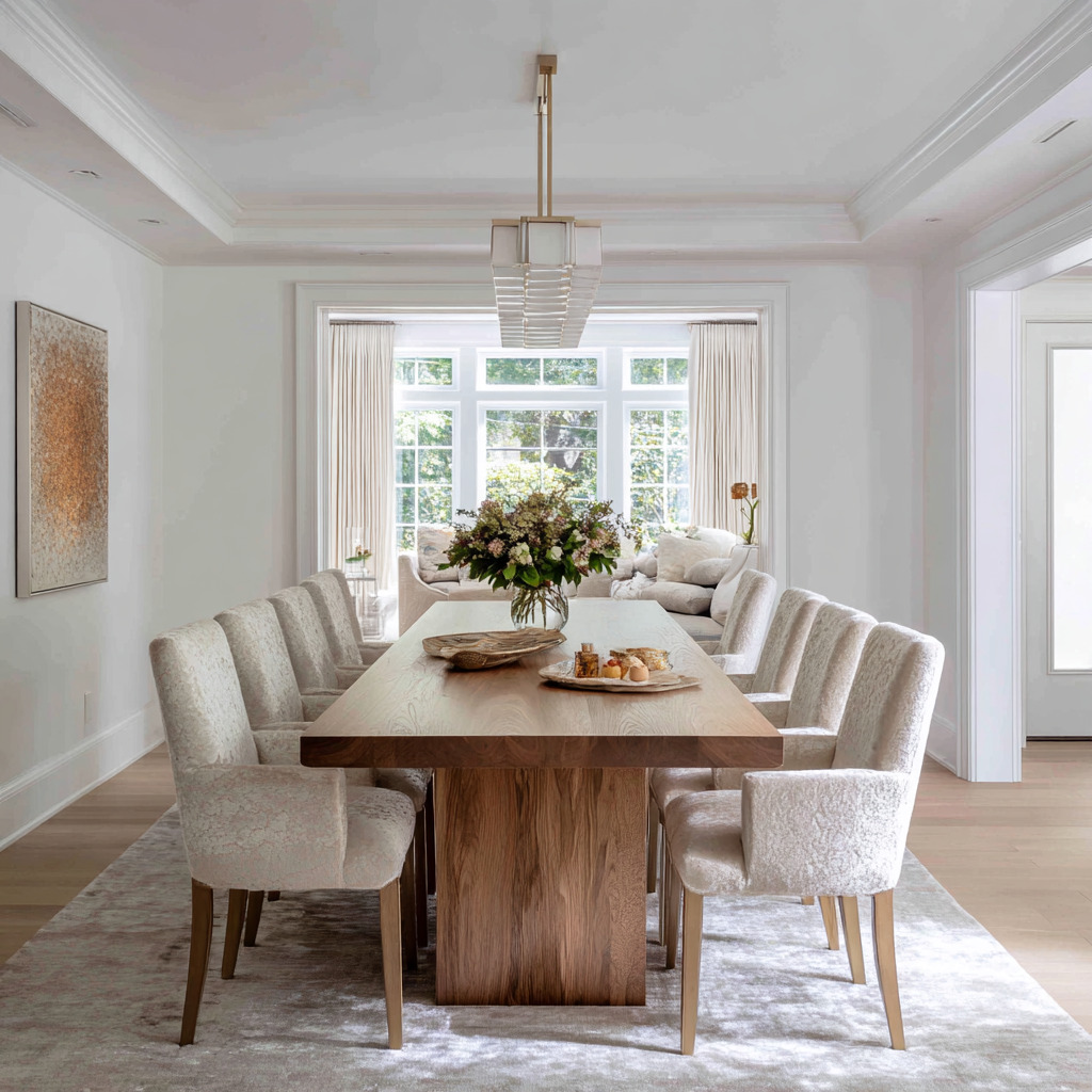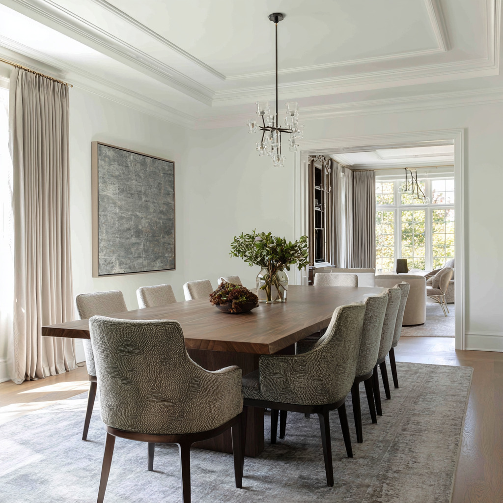 This is one of the clearest examples of contemporary formal dining room ideas thinking like composition rather than matching sets.
