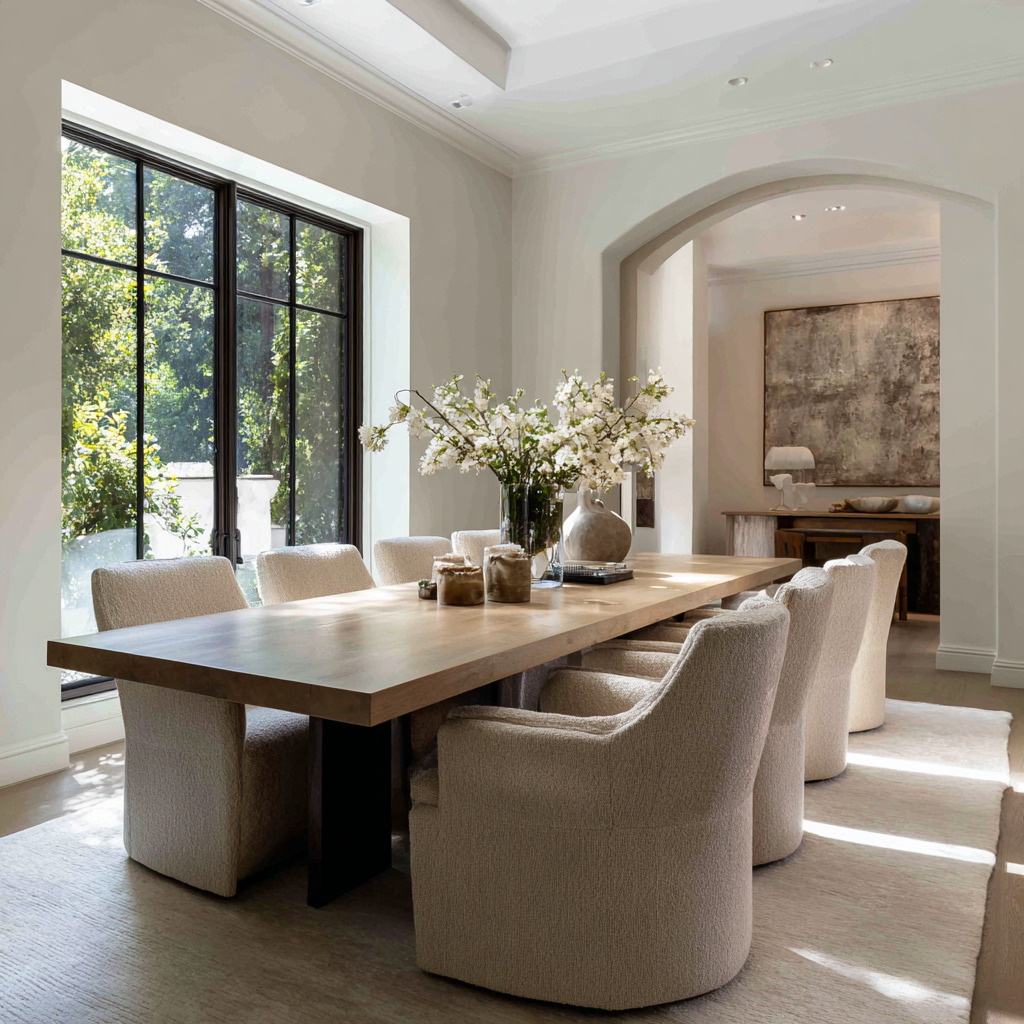 - Repeated openings or layered views (arches, corridors, glimpses into the next lounge) add depth that reads like a hosting narrative: dinner is one chapter, not the whole book. The dining area feels important because it sits inside a larger, curated flow.