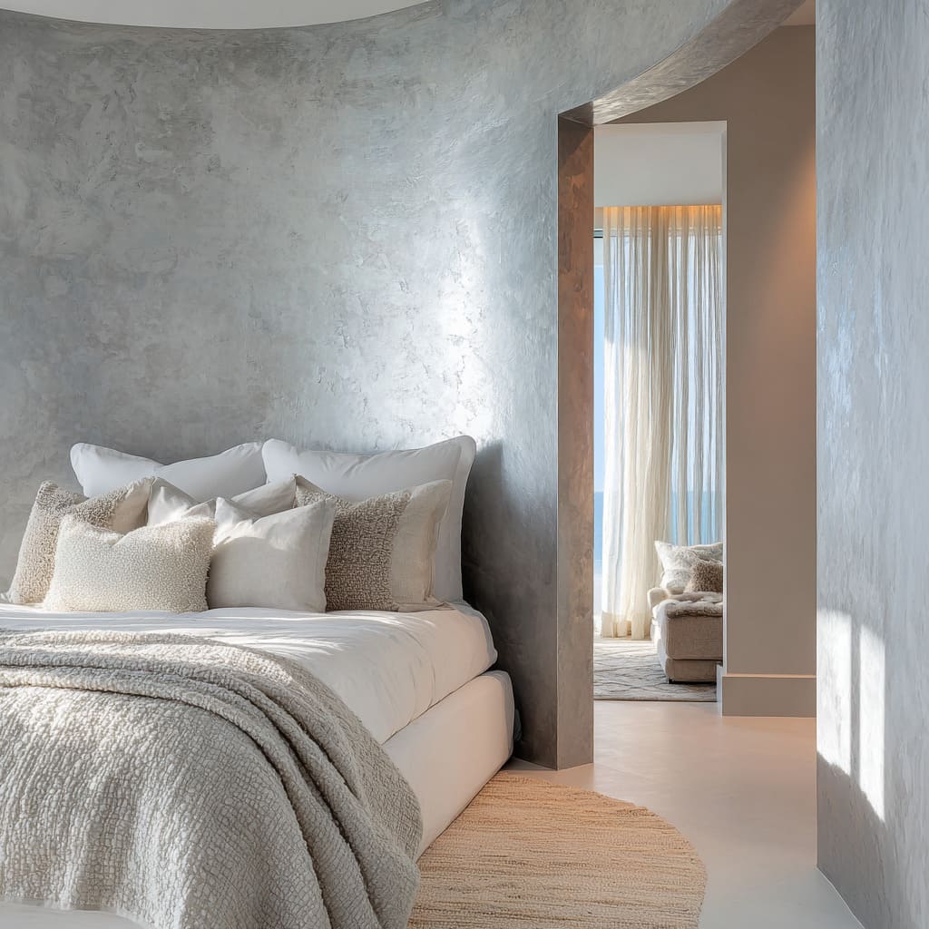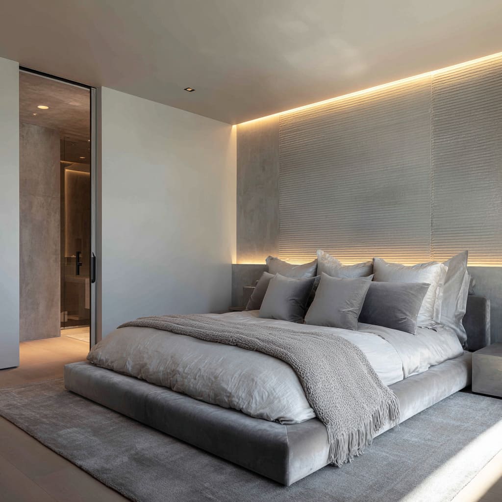 What unites all grey and silver bedroom designs is their commitment to atmosphere. The décor does not rely on objects or motifs but on how light behaves on surfaces.