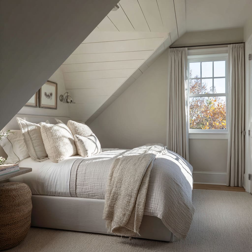 - Textures echo each other across scales—ribbed walls, stitched duvets, pleated curtains.