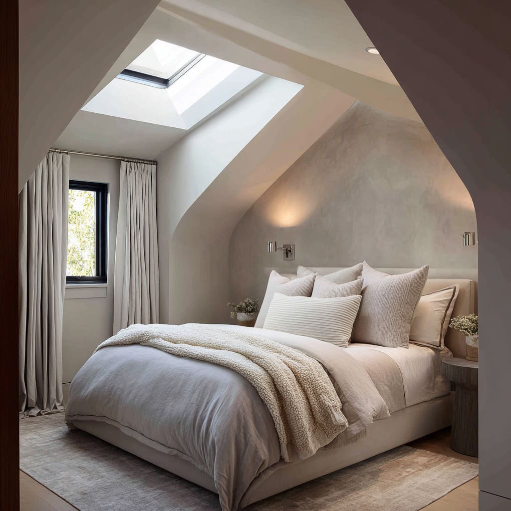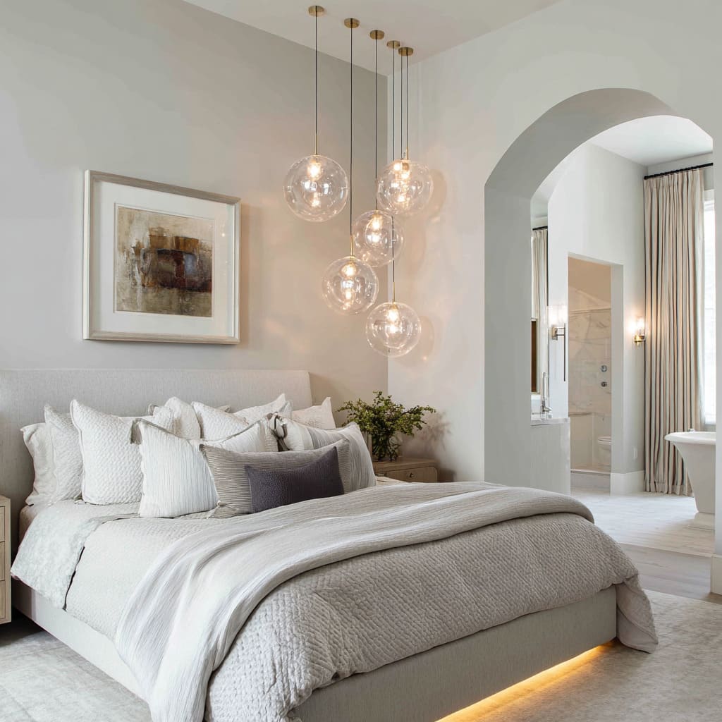Yet strict symmetry is never absolute. A single off-center artwork, a throw crossing the bed diagonally, or pendants hung at slightly varied heights introduces controlled imperfection.