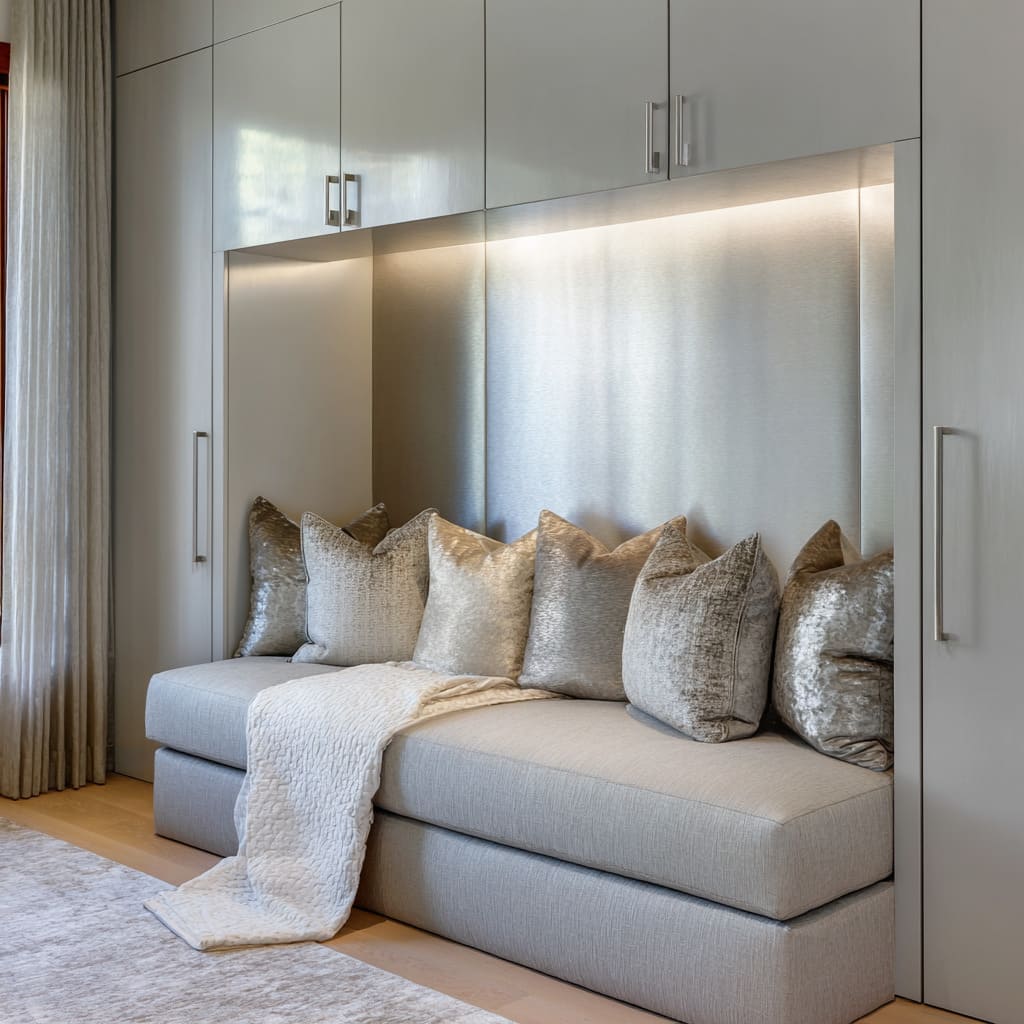 Among the most refined directions in modern interiors, grey and silver bedroom designs build their atmosphere not through color contrast but through the subtle choreography of light, texture, and tone. In such designs, silver behaves like light itself—reflected, diffused, and scattered—while grey becomes the quiet architecture that contains it.