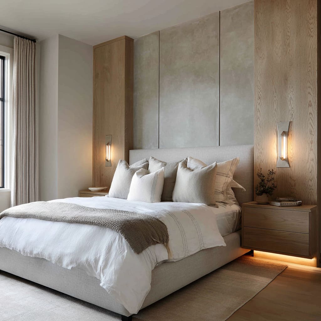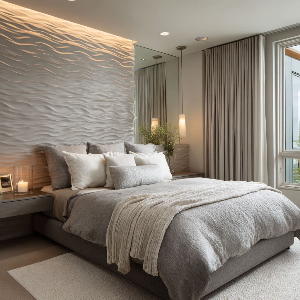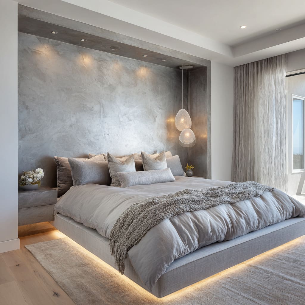 - Light as Material: Linear sconces, under-bed glows, or backlit ribbing wash light over matte walls, converting illumination into a visible texture.