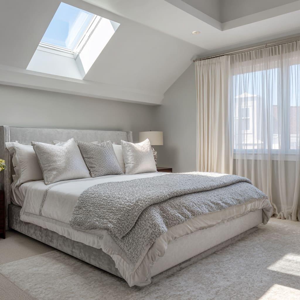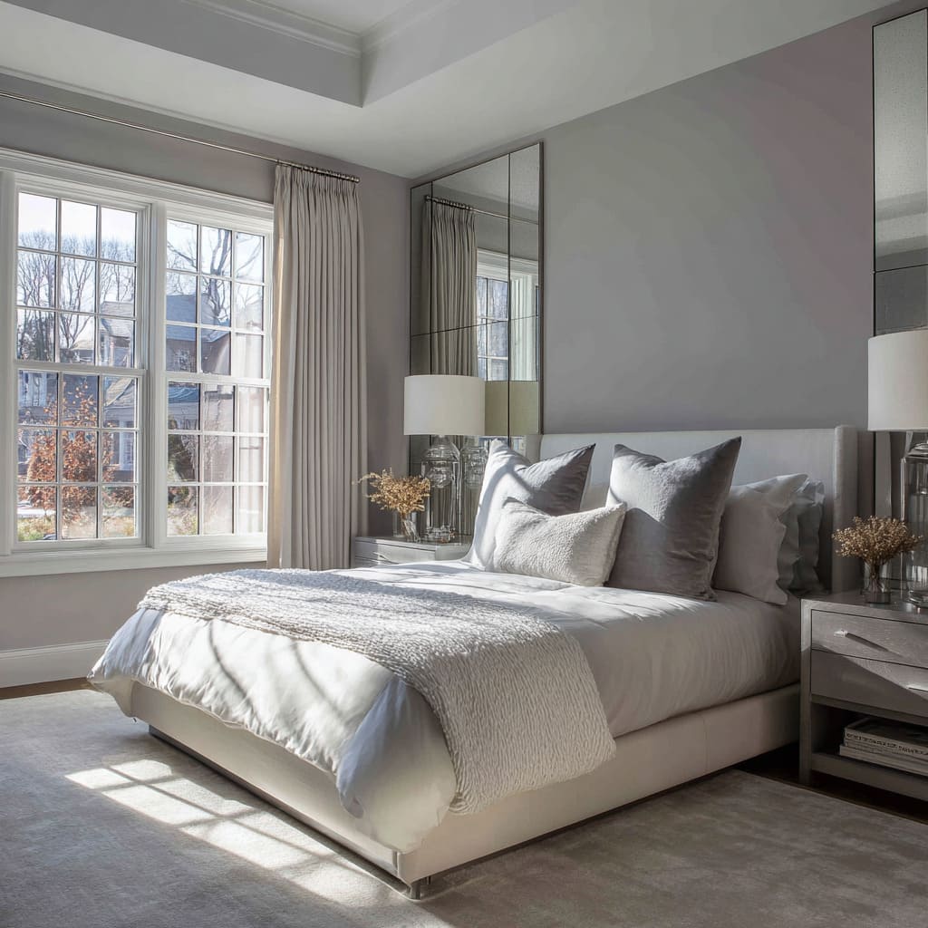 Light is the most active participant in grey and silver bedroom ideas. It defines every surface three times over—morning clarity, afternoon haze, and evening glow.