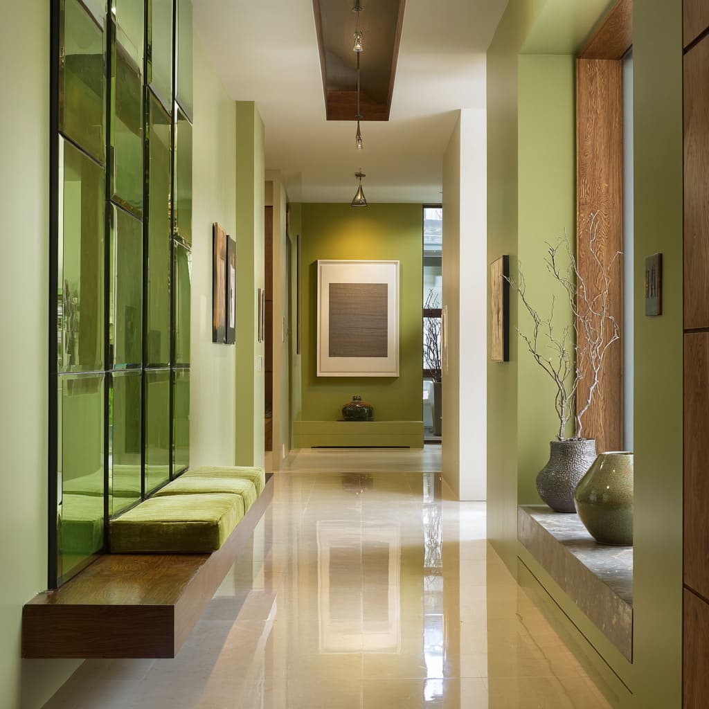At first glance, many green-toned hallways seem straightforward—calm, balanced, even minimal. But what gives them depth is not how much is added, but how consistently each element responds to the central hue.