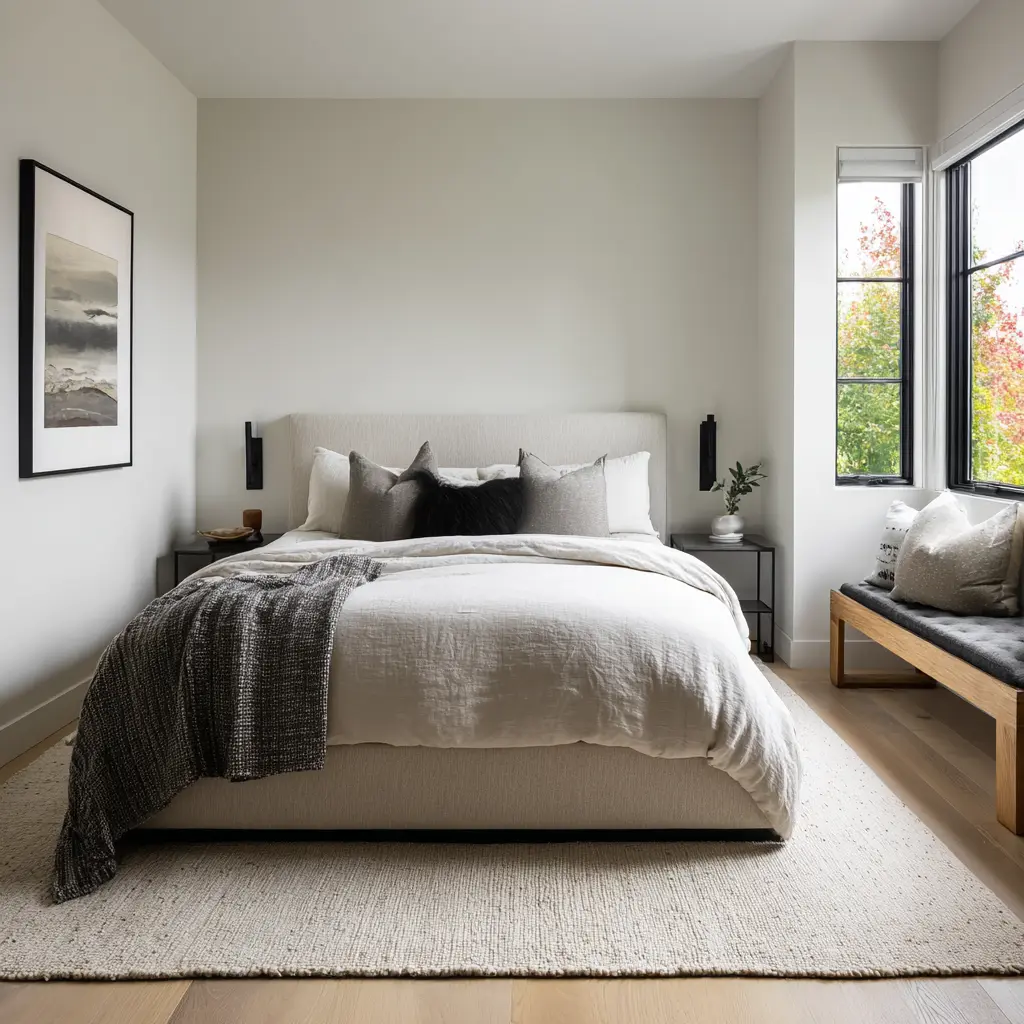 The bed should feel like the emotional center of the room, but not like a loud object.