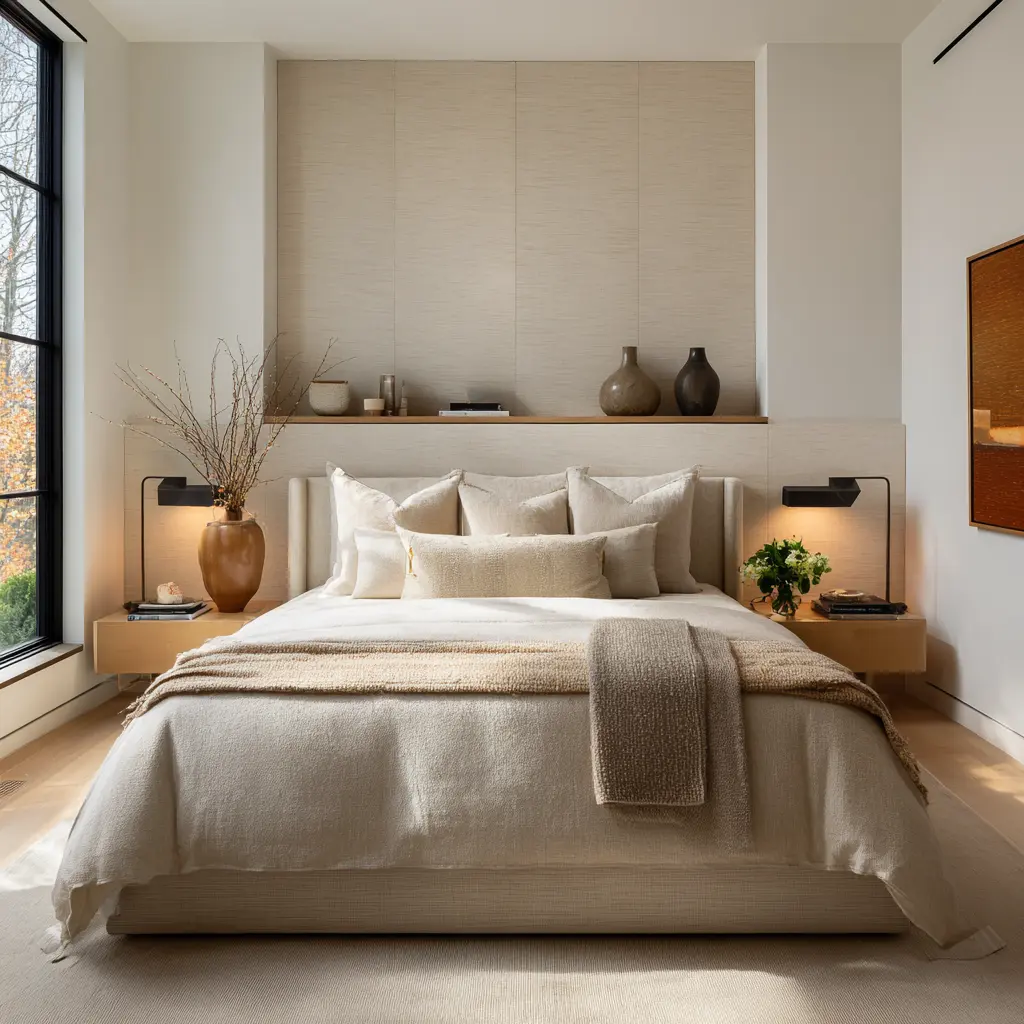 When those moves work together, the interior design starts to feel less like a decorated bedroom and more like a space designed to lower strain.