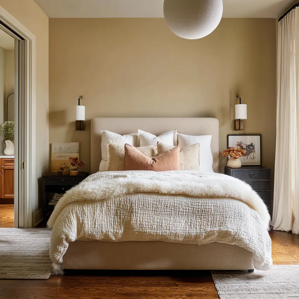 This is why some bedrooms with simple finishes feel deeply restorative, while others with similar colors still feel cold, unfinished, or slightly tense. The difference is not the color family alone.