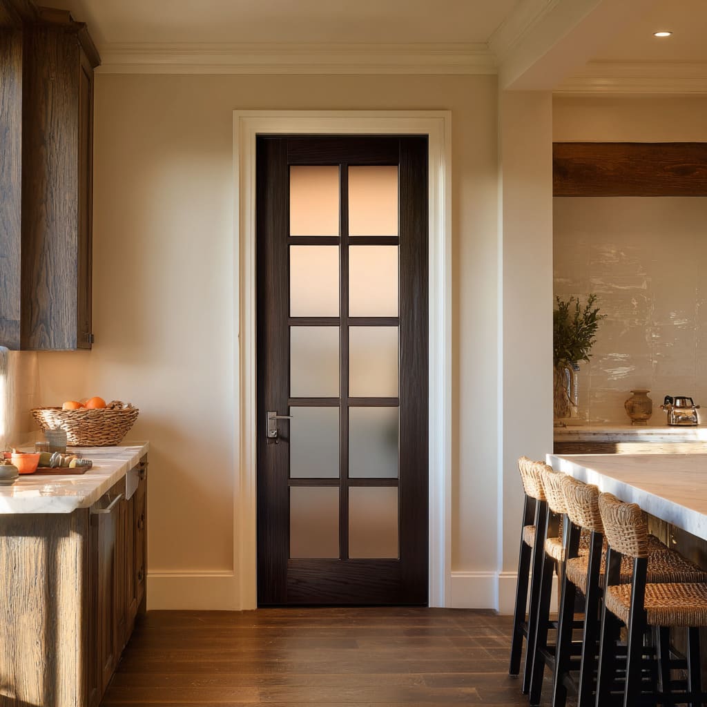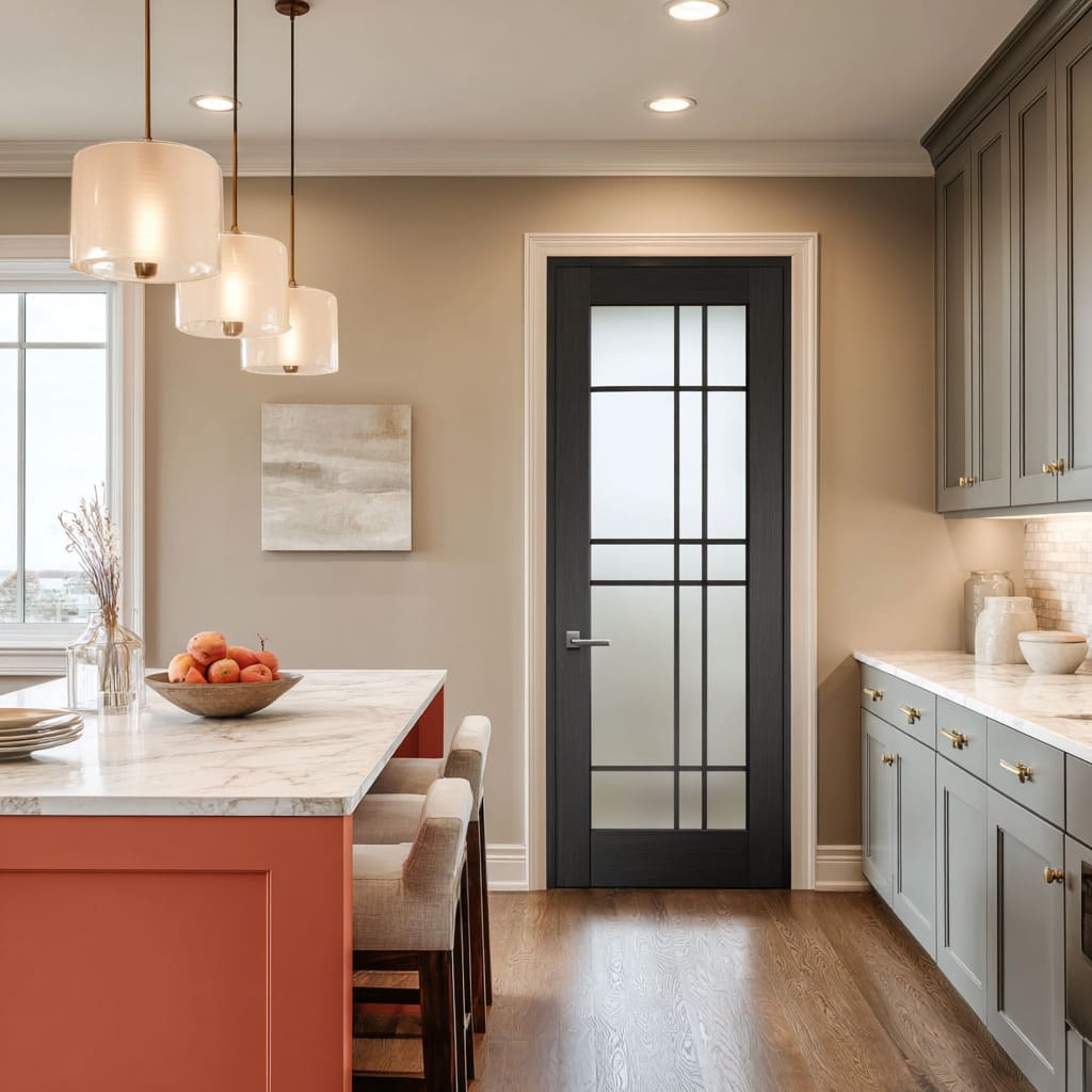 One of the most under-discussed moves in door glass design kitchen concepts is the way texture converts daylight into a material effect rather than a readable view. Frosted glass can act like a soft lamp surface, filling a door with even glow that supports calm interiors and reduces visual noise in open-plan layouts.
