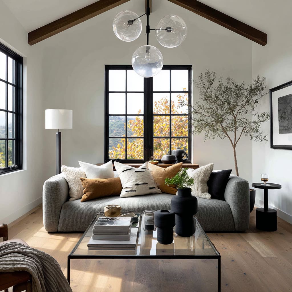 This is why light grey couches living room ideas can look sharp even with very few colors. The black isn’t used as decoration; it’s used as edge control.