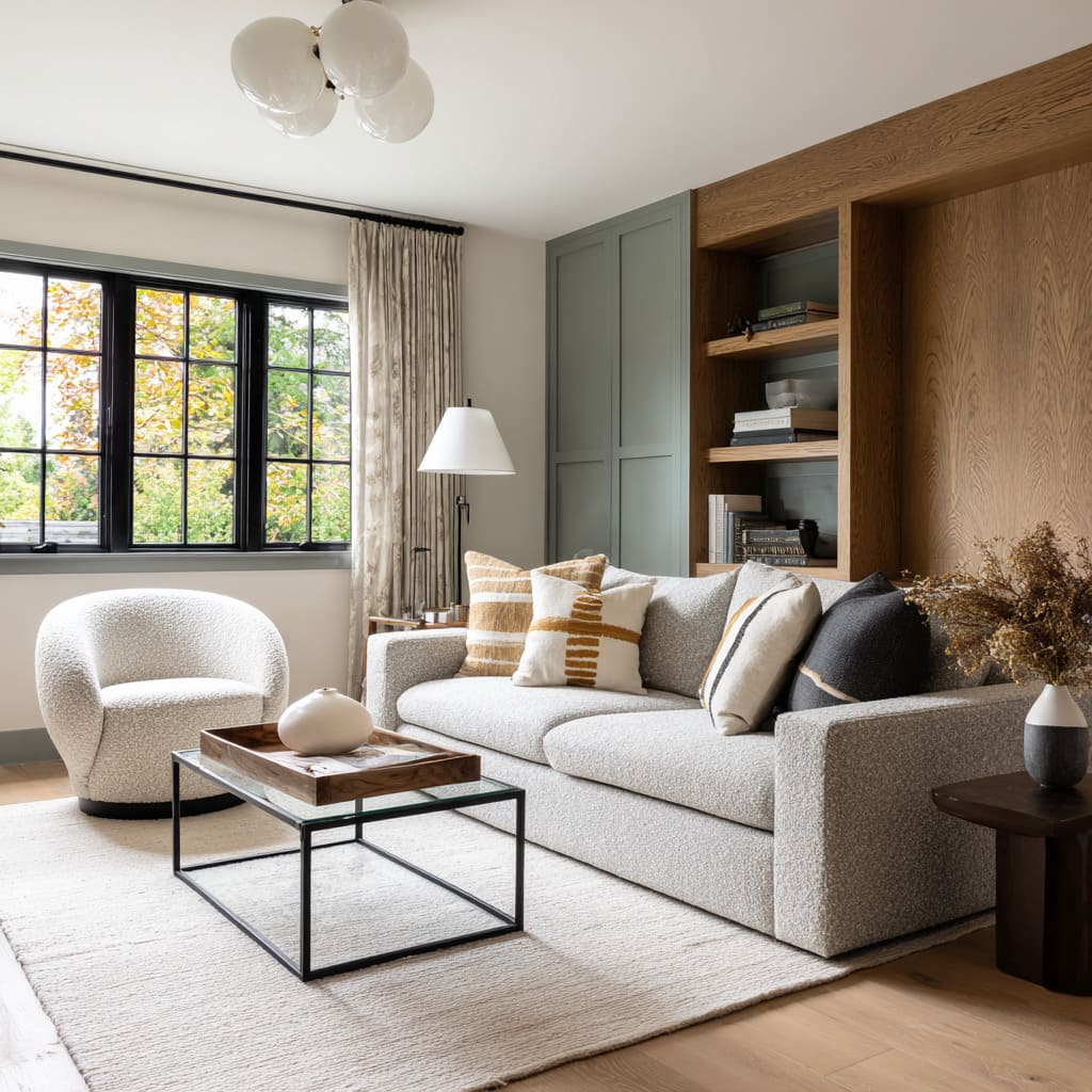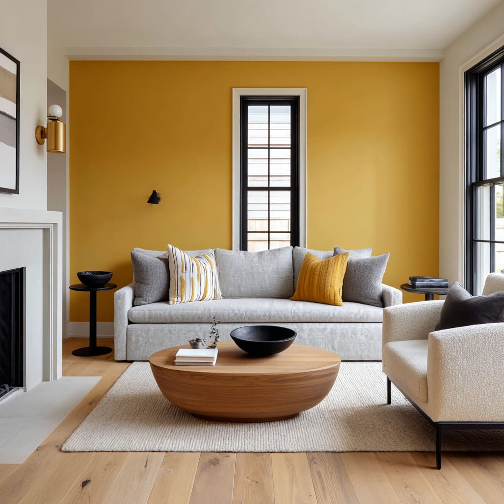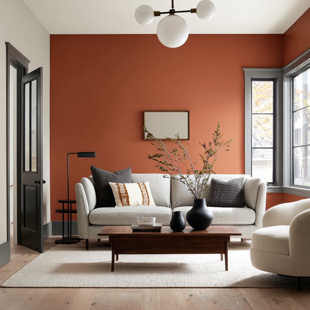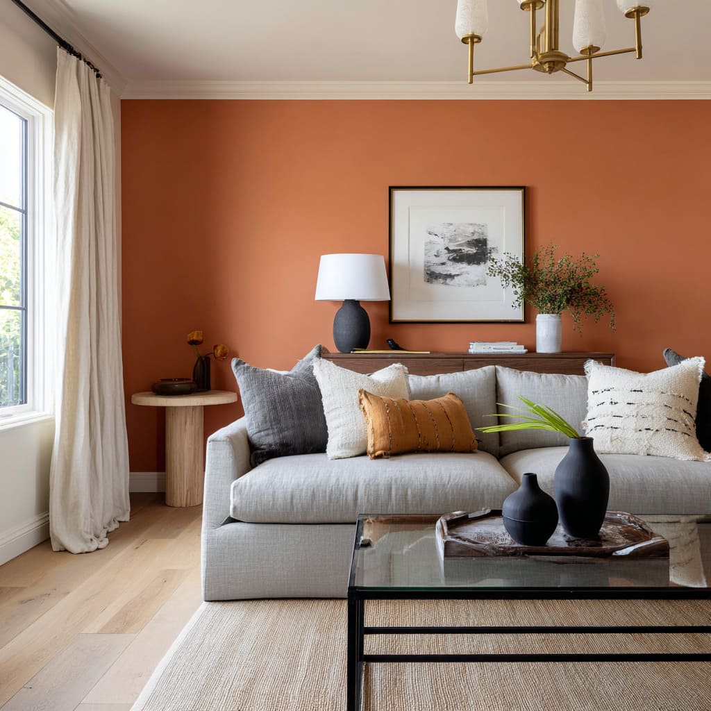 That’s why warm notes such as clay, rust, mustard, or olive can feel refined: they appear as one concentrated moment (a pillow, a shade, a small art field) and are then reinforced by warm woods or warm metals nearby. The color doesn’t have to be everywhere; it has to be believable in the design’s material story.