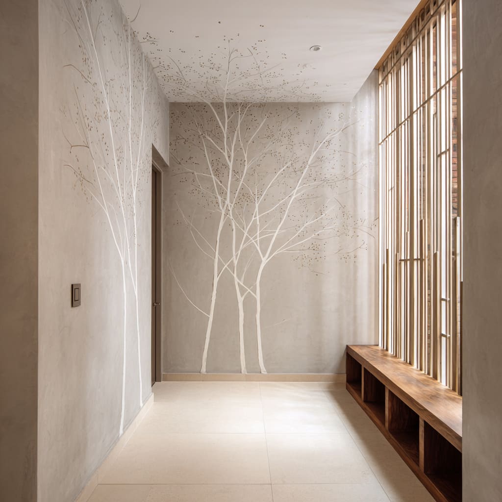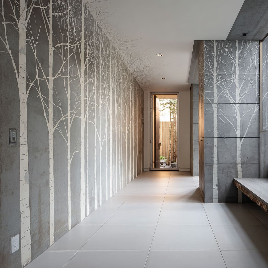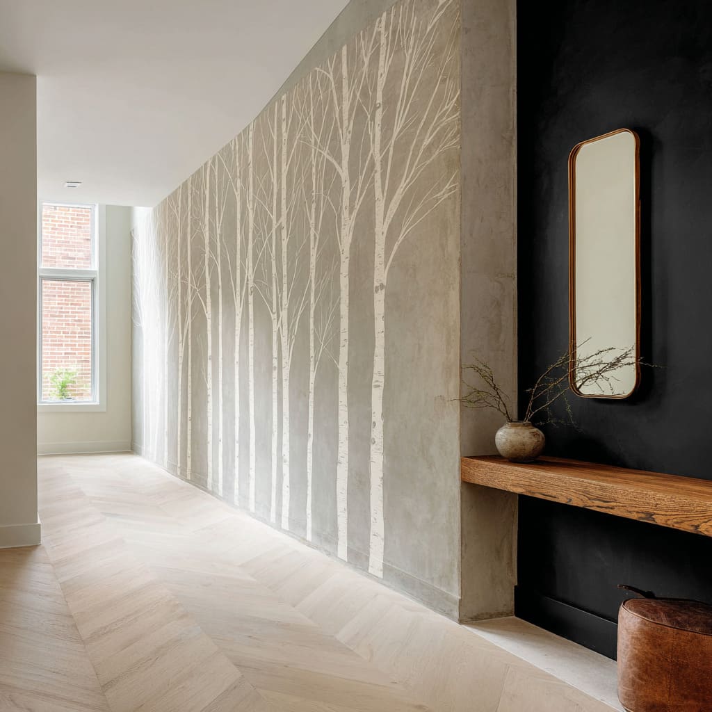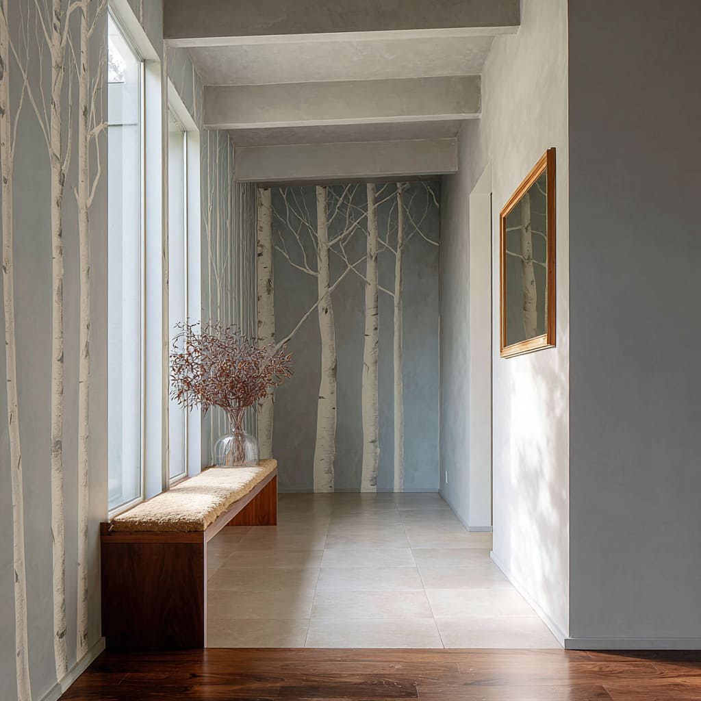 That is the core reason a birch scene can feel both minimal and memorable, even in tight transitional spaces, while still aligning with minimalist entryway ideas and maintaining a clean visual hierarchy.
