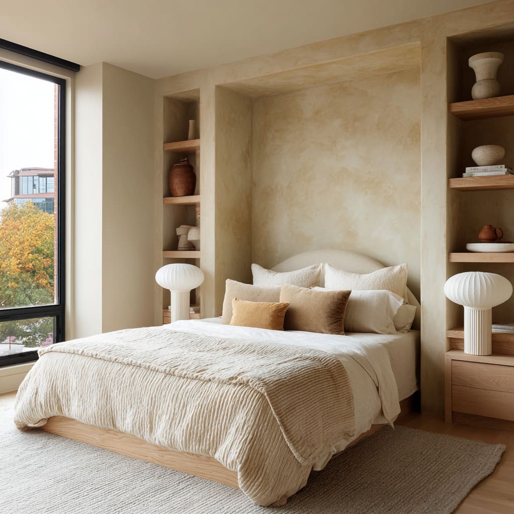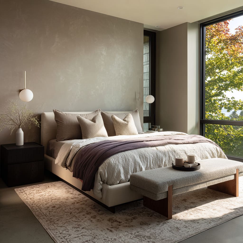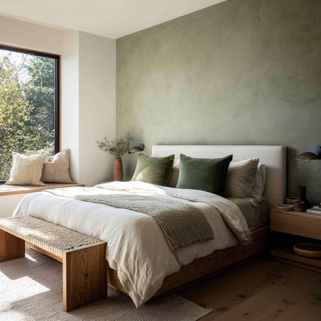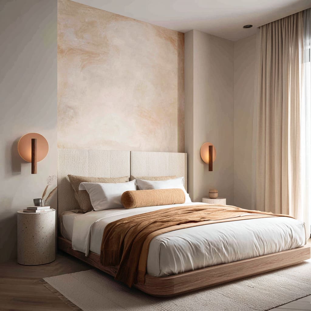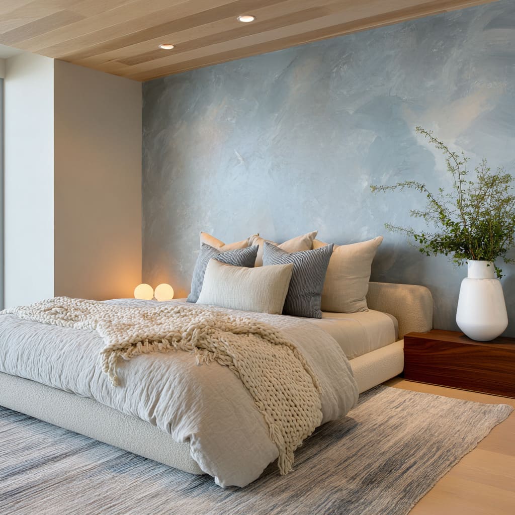 A modern bedroom today isn’t defined by the wall color alone, but by how that wall behaves alongside everything else.