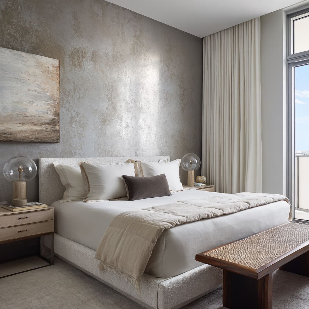In thoughtfully layered bedroom spaces, light doesn’t compete with color—it completes it. Walls with brushed or matte surfaces are selected not for gloss, but for how they hold and release light at specific moments.