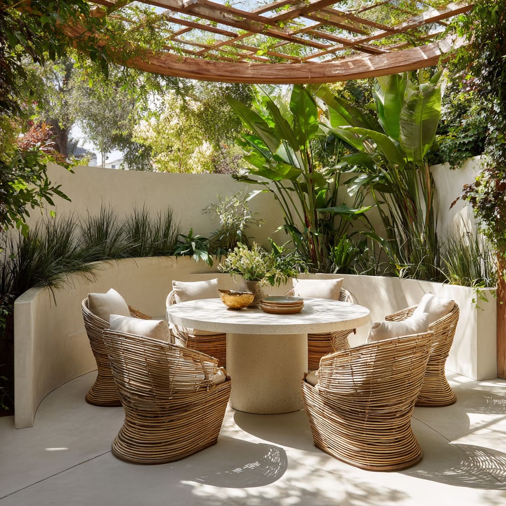 With this integrated approach, structure and soft planting share the same footprint, maximizing visual and functional economy in even the tightest alfresco dining area ideas.