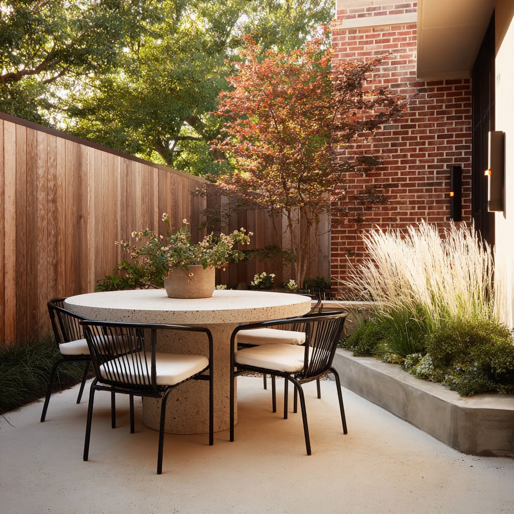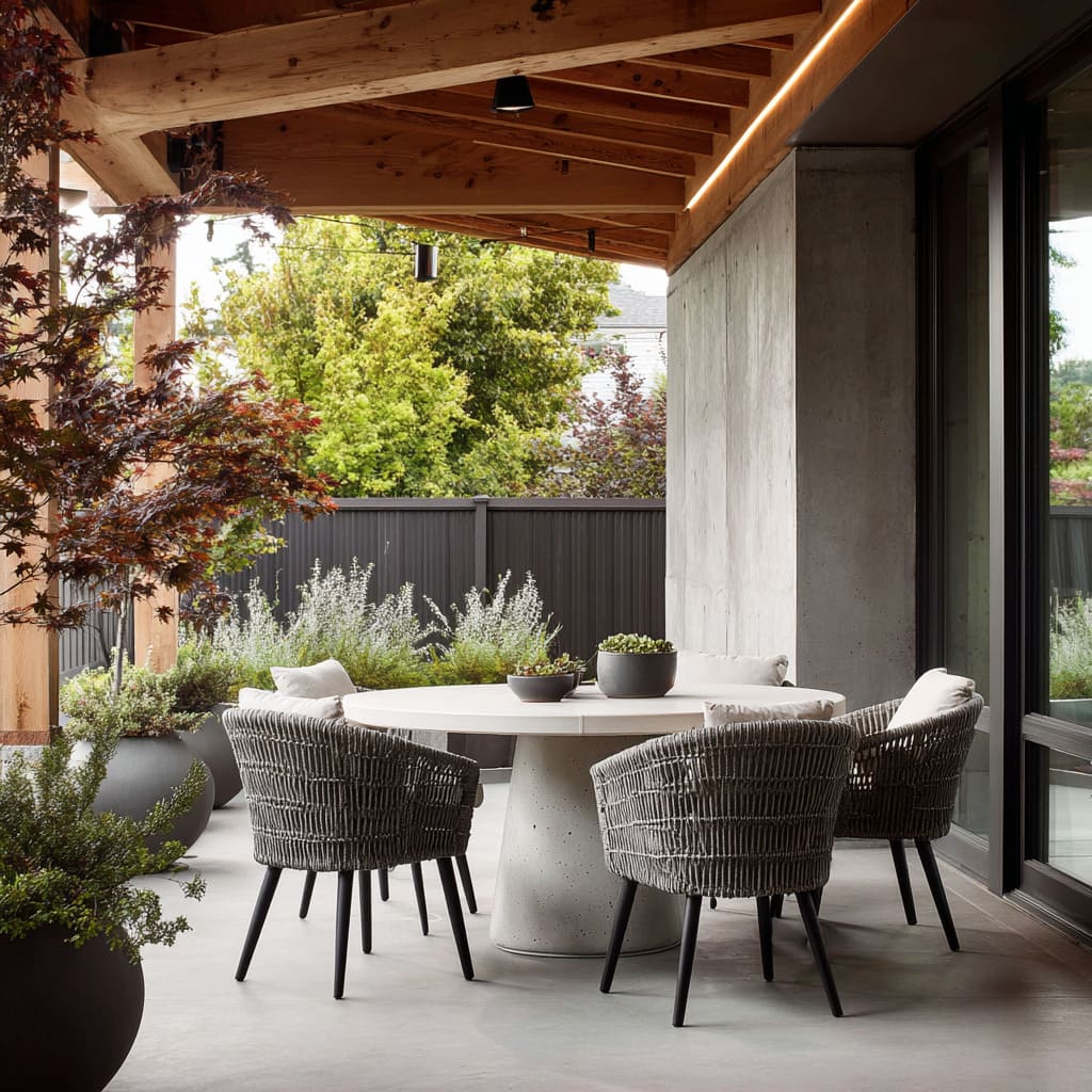 Some of the most effective al fresco ideas come disguised in quiet choices—shapes, finishes, and arrangements that don’t immediately call attention to themselves but carry a shared design language. Across different climates and architectural styles, modern backyard dining areas speak in a consistent visual rhythm.