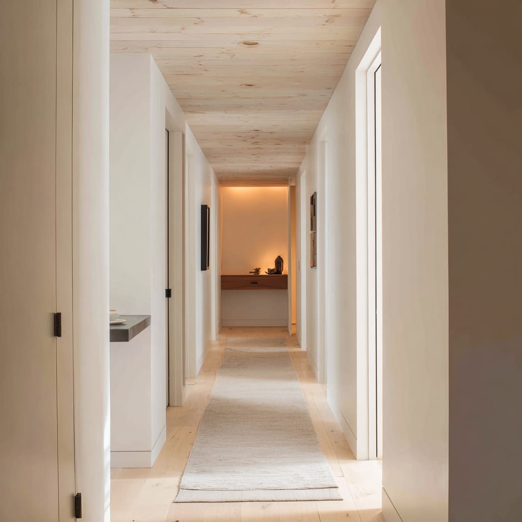The experience changes depending on time of day, angle of approach, or even mood, offering a kind of long hallway inspiration that isn’t rooted in trend, but in awareness. This approach makes even the most narrow or minimal corridor feel complete—quietly structured, visually paced, and texturally rich.