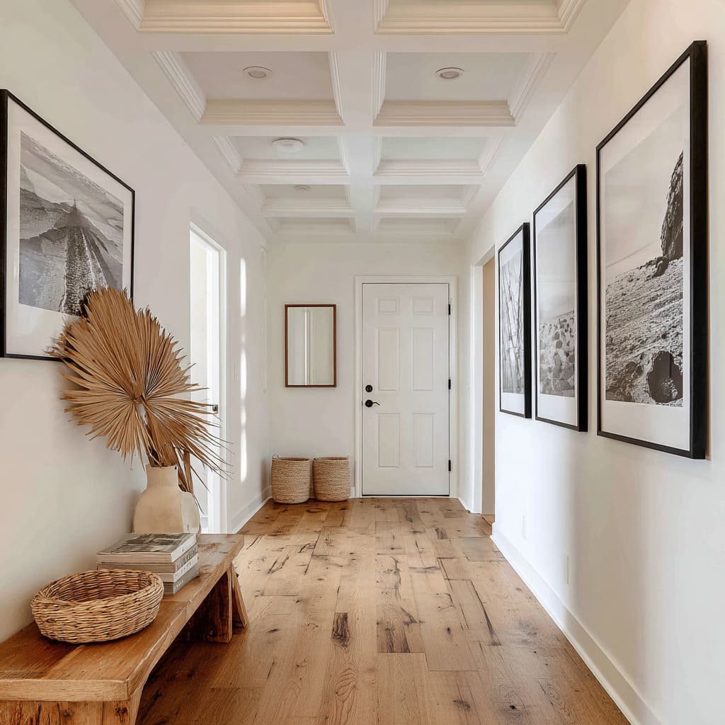 This type of gentle composition is one of the subtler long hall way ideas—a method that whispers rather than shouts, bringing movement and curiosity into a format that could otherwise feel too straight.
