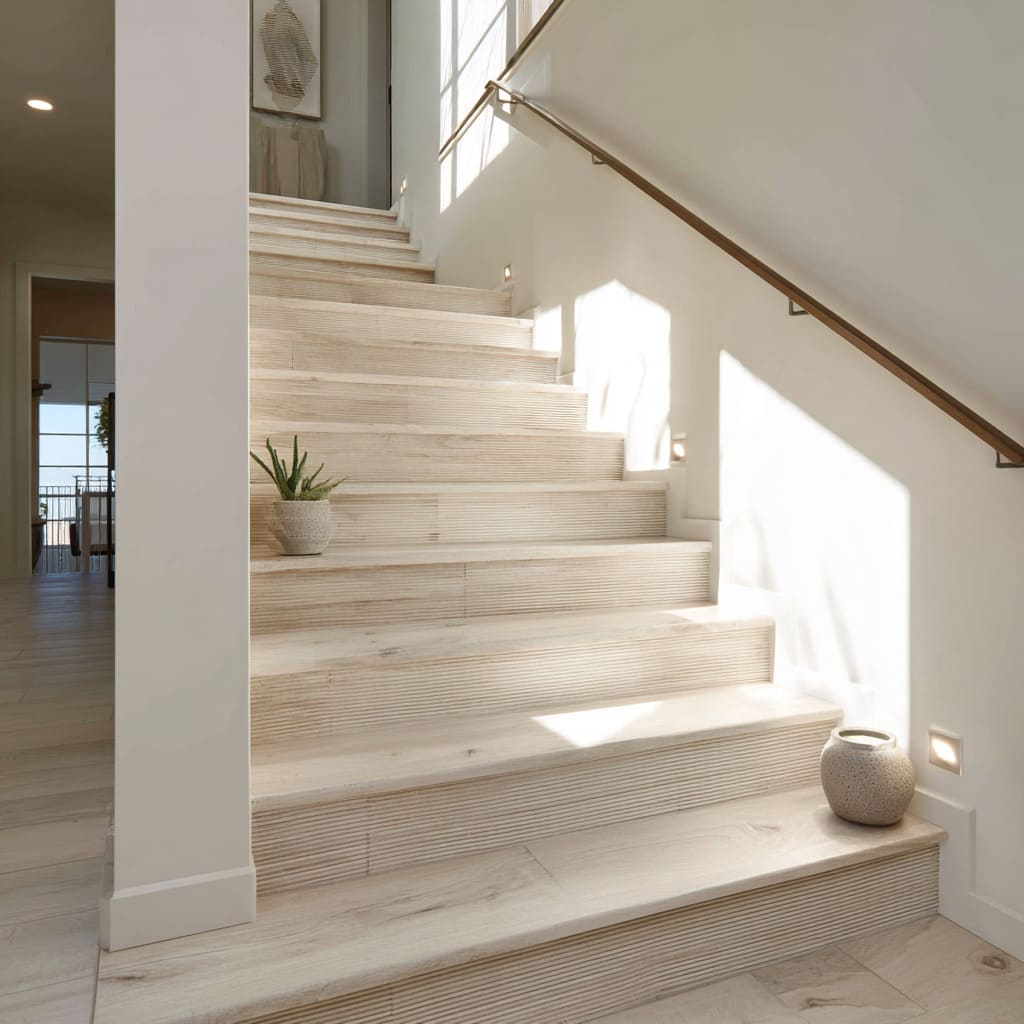 Stairs are no longer a quiet connector between floors; they quietly set mood, pace, and personality across an entire home. In recent interiors, stair riser ideas stretch far beyond simple paint or plain timber, instead bringing texture, light, and gentle pattern into a vertical rhythm that feels warm and composed.