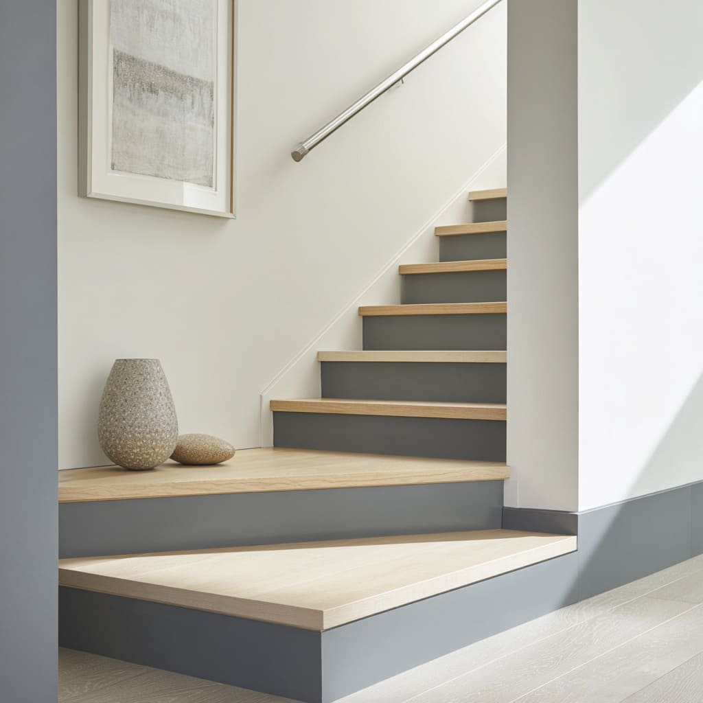 These moves show how even the smallest transition line shapes presence. A well-chosen skirting tone allows stair riser decoration ideas to feel connected to the overall room language, not isolated.