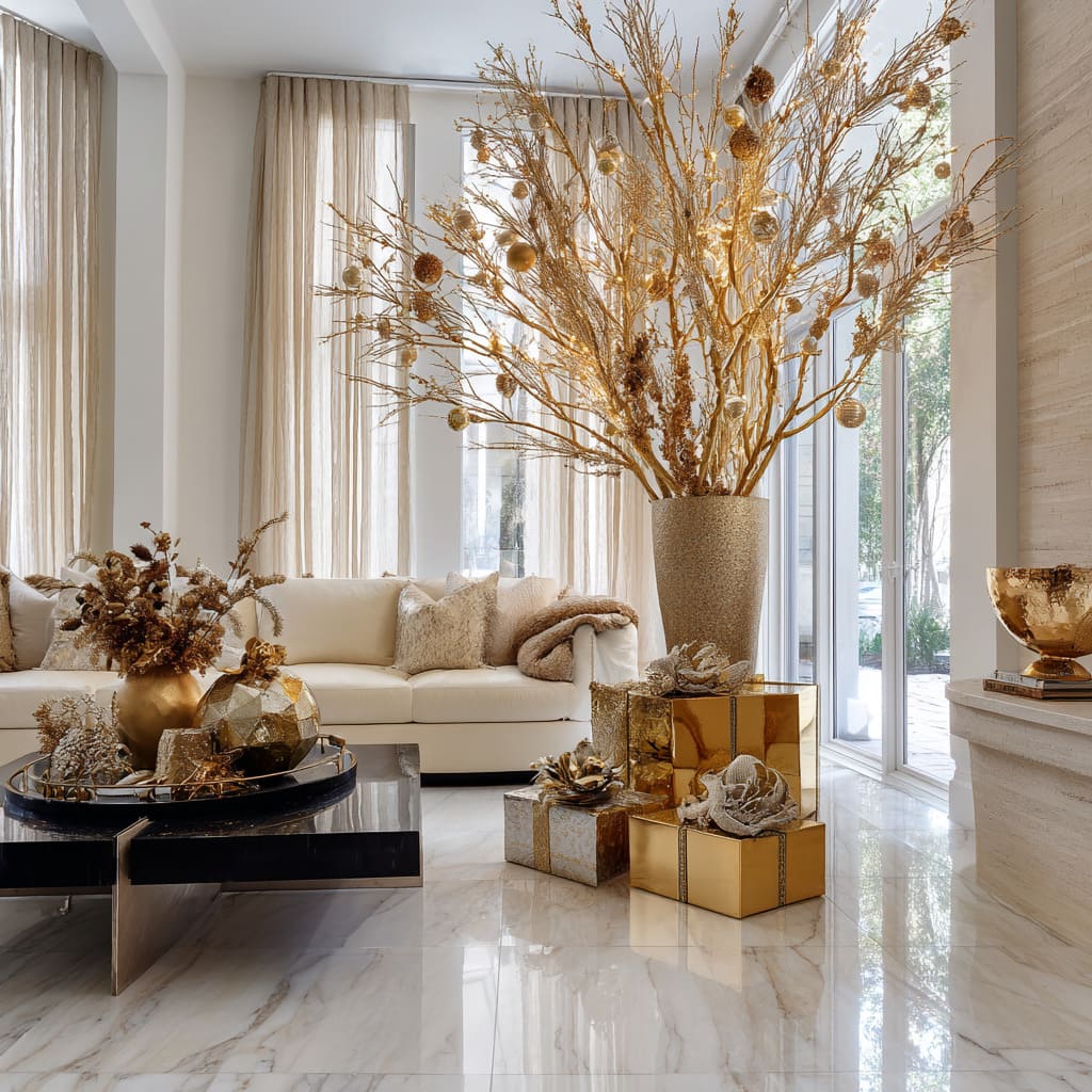 Single-metal palettes—champagne, pewter, copper, or brushed gold—recall department-store glamour while staying clean enough for modern interiors. By limiting hue and varying sheen—matte beside mirror, brushed against frosted—they can be recreated with the shimmer of mercury glass without clutter.