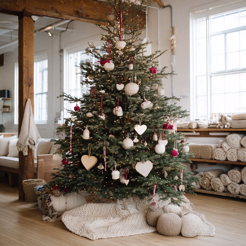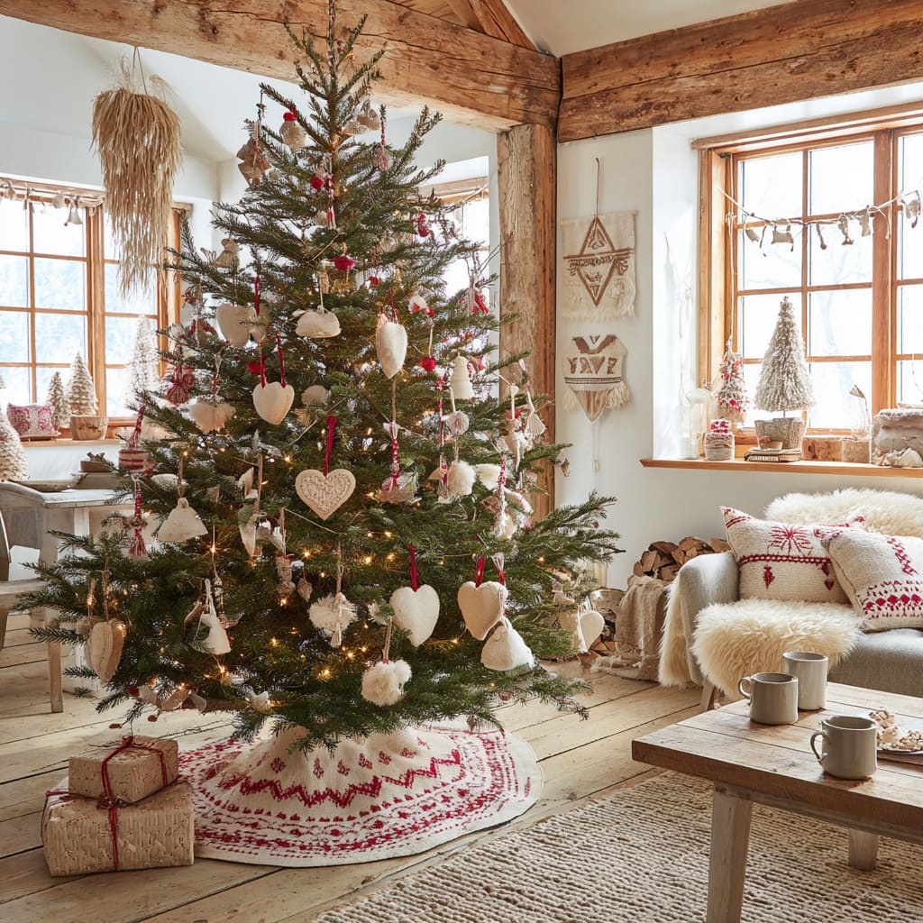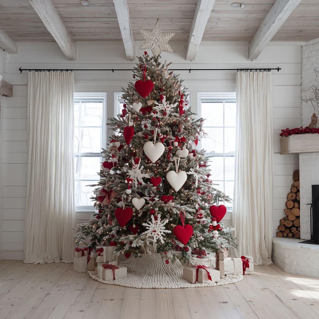 A central insight in vintage Christmas tree decor ideas is how proportion replaces abundance. Oversized hearts, snowflakes, and pleated fans turn once-delicate motifs into sculptural punctuation.