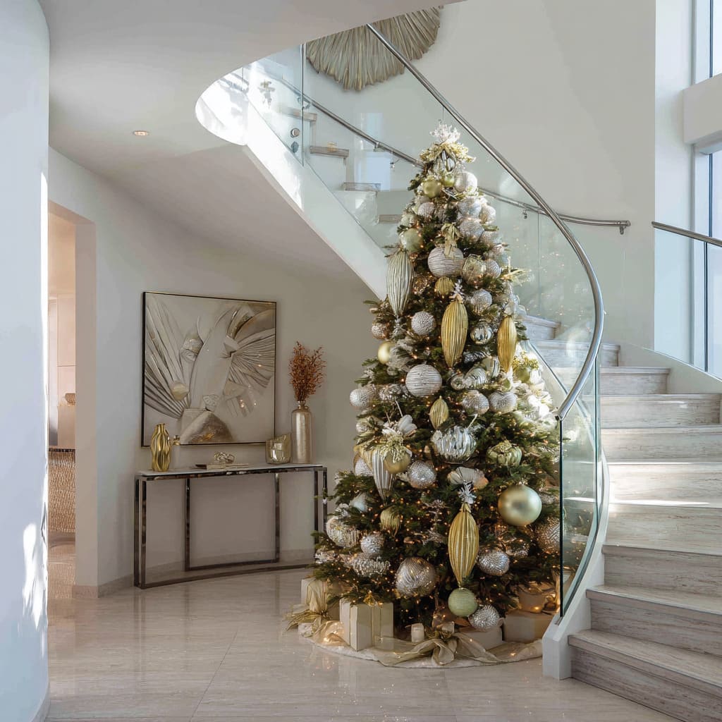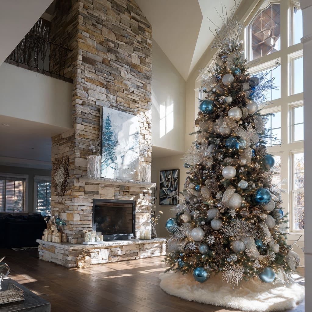 Placement aligns with primary sightlines: a finial drop answers a stair curve; a starburst repeats a chandelier’s ray pattern; ribbon movement tracks the span of a beam. The viewer experiences one continuous gesture from architecture into adornment, which is why the tree never feels like a parked prop.
