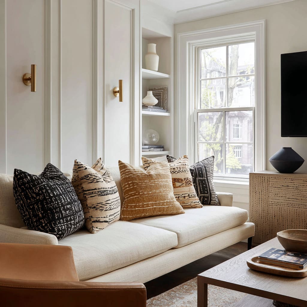 This is why many pillow ideas for beige couch feel elevated when they include pattern: the pattern is present, but it behaves like quiet typography rather than a loud poster.