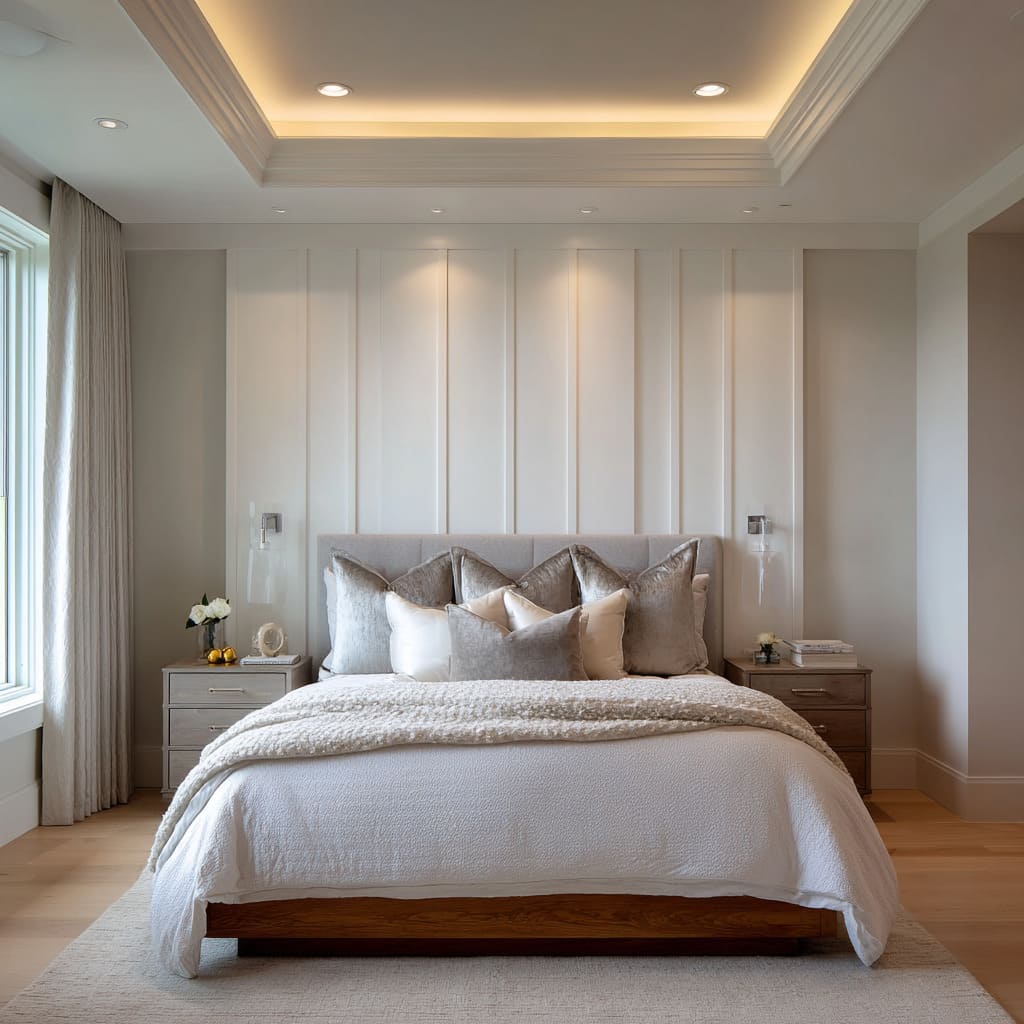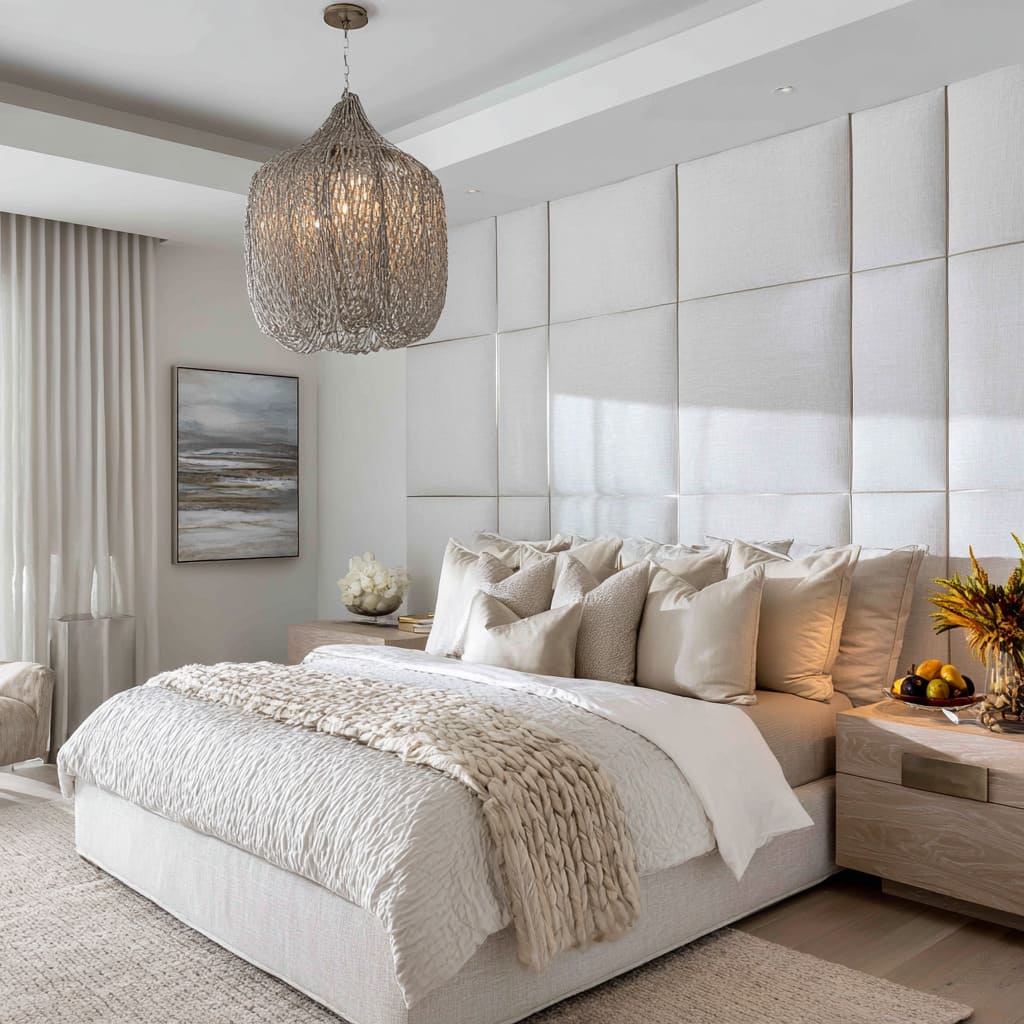The result is a quietly dimensional core that supports broader white and silver bedroom ideas without resorting to busy patterns.