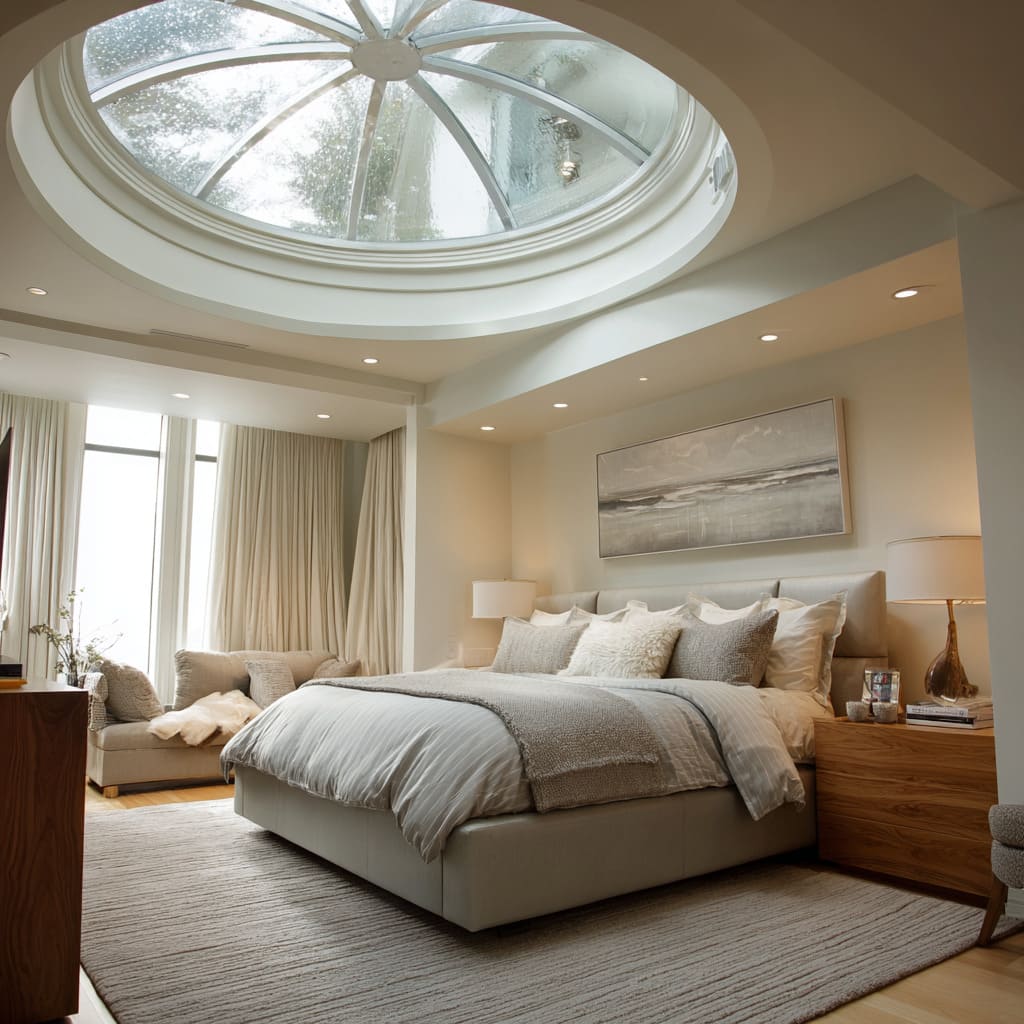 - Clouds: oculus daylight, diffuser pendants, dense sheers that turn windows into soft panels.