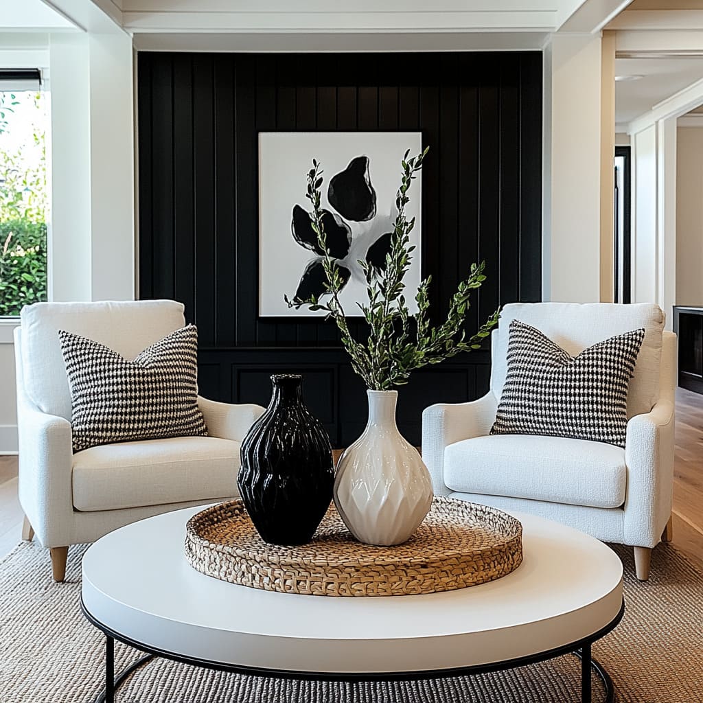 Archetypes of black-and-white living rooms