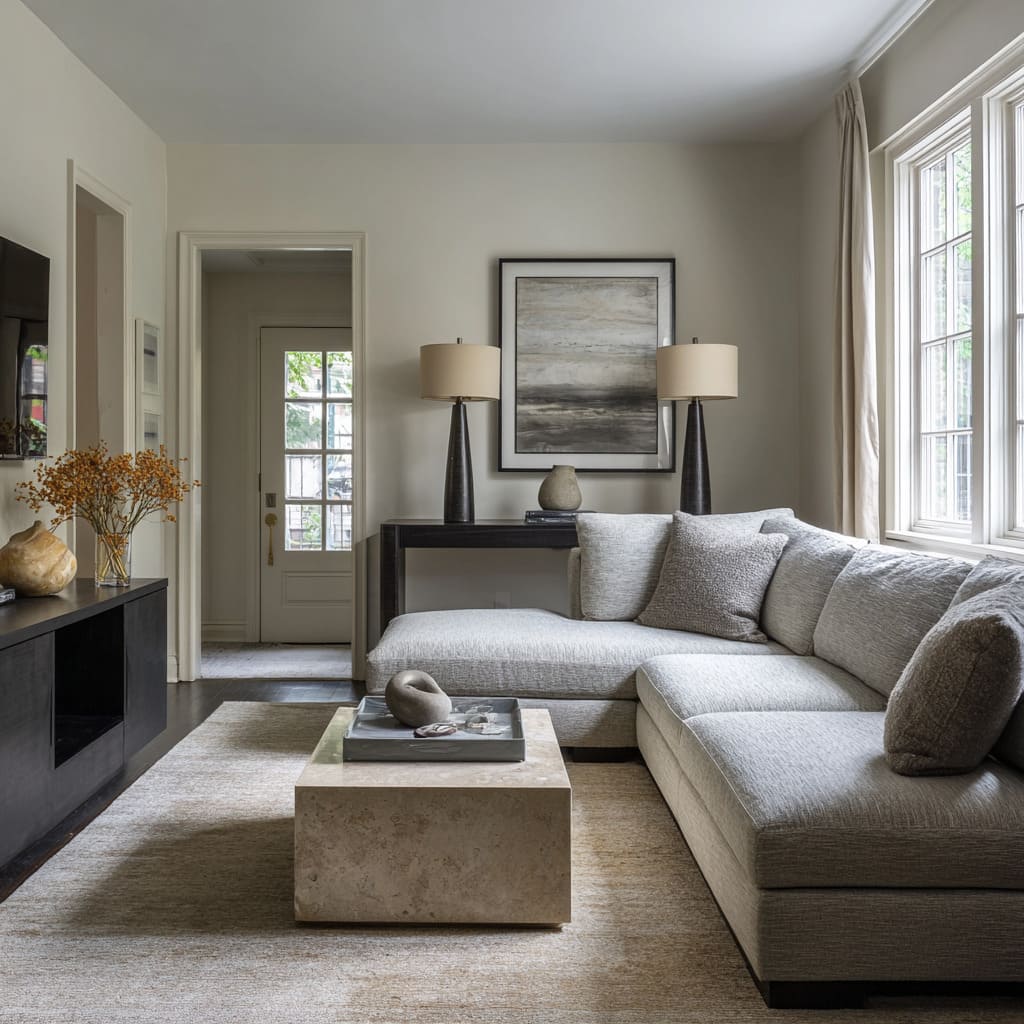 - Two lamps + centered art behind a sectional can turn the back of the sofa into an intentional architectural “back line.”