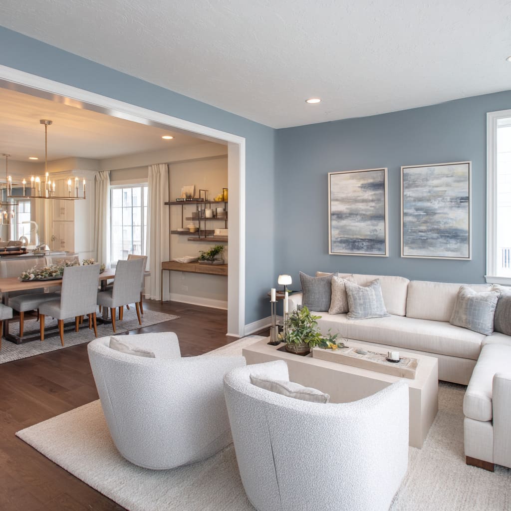 Blues are also used to define transitions. Placing a saturated tone at the point where a living space meets a dining zone, or around a partial divider, turns the paint into a threshold—a signal of shift.