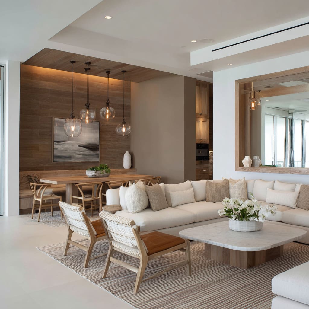 - Contrast is rarely high-voltage. Clean white is almost always swapped out for softer versions—think cream, sandy ivory, or driftwood beige. This keeps the focus on balance, not drama. When there is contrast, it’s usually in tone or material, not in brightness.
