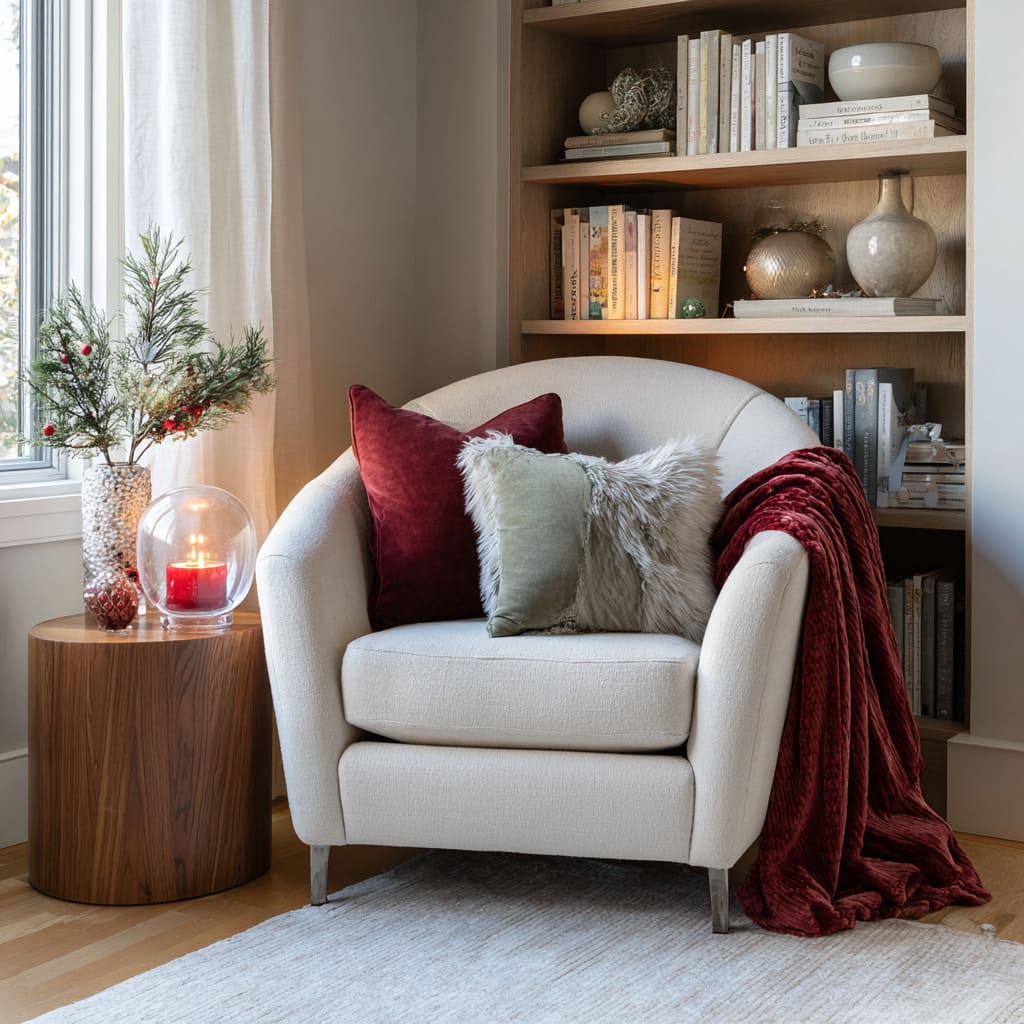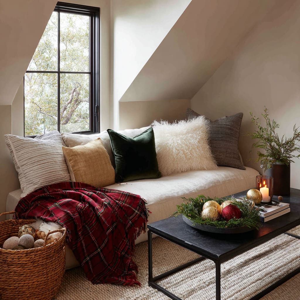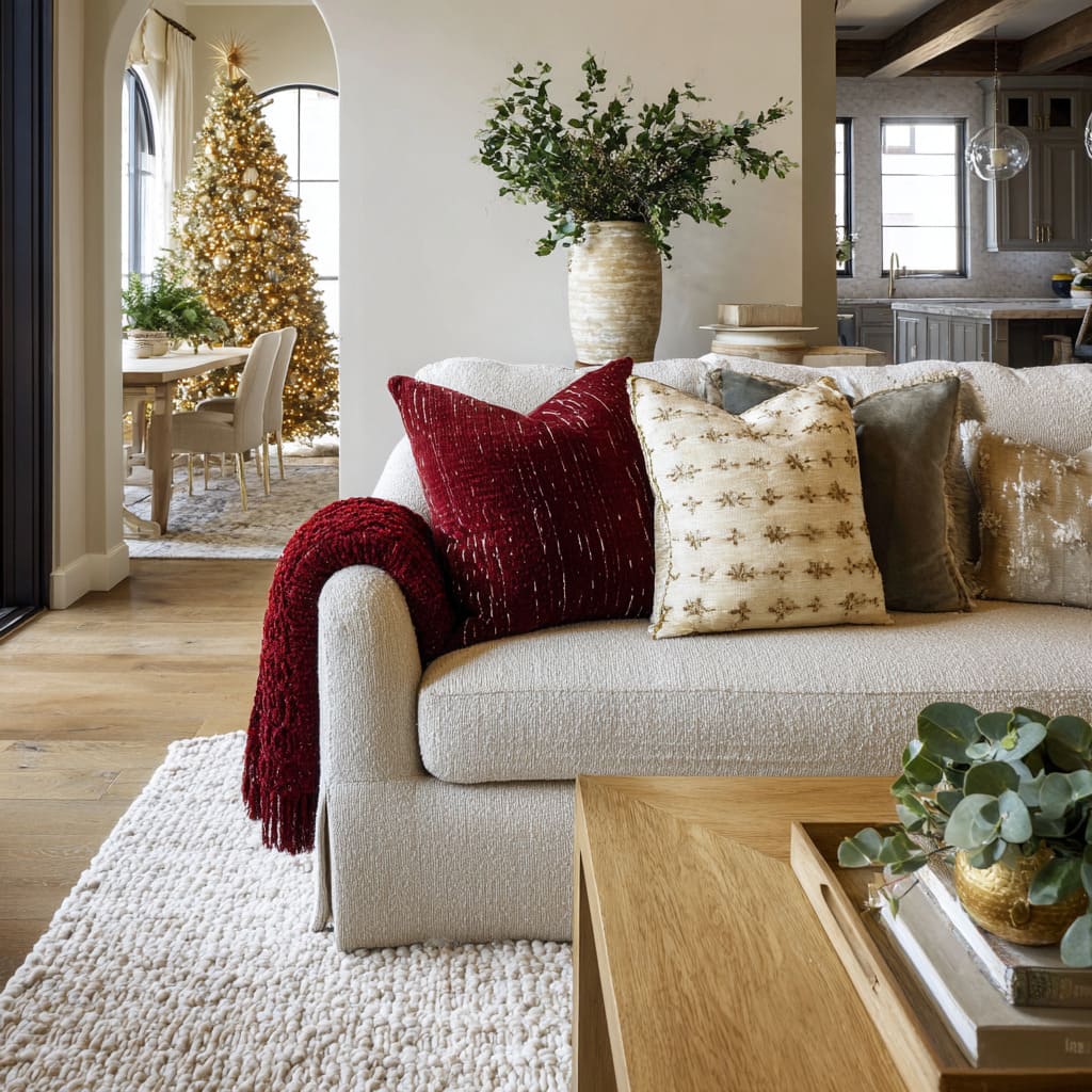 They function at human scale, so the holiday feeling is literally where people sit, curl up, or rest. And because textiles change the perception of warmth and depth instantly, they form the backbone of both simple christmas decorating ideas and more layered compositions.