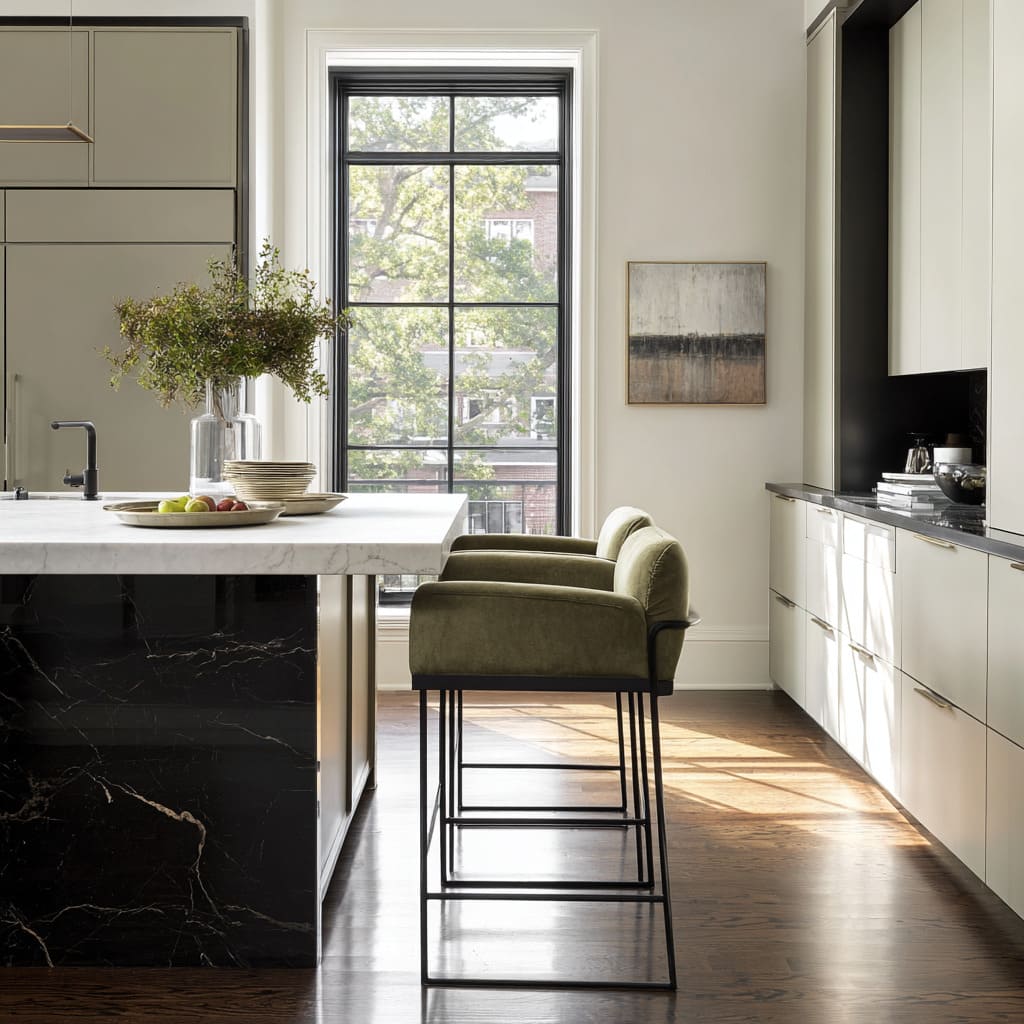 These refined shades turn kitchen island stool ideas into color therapy: enough hue to carry mood, restrained enough to preserve harmony.