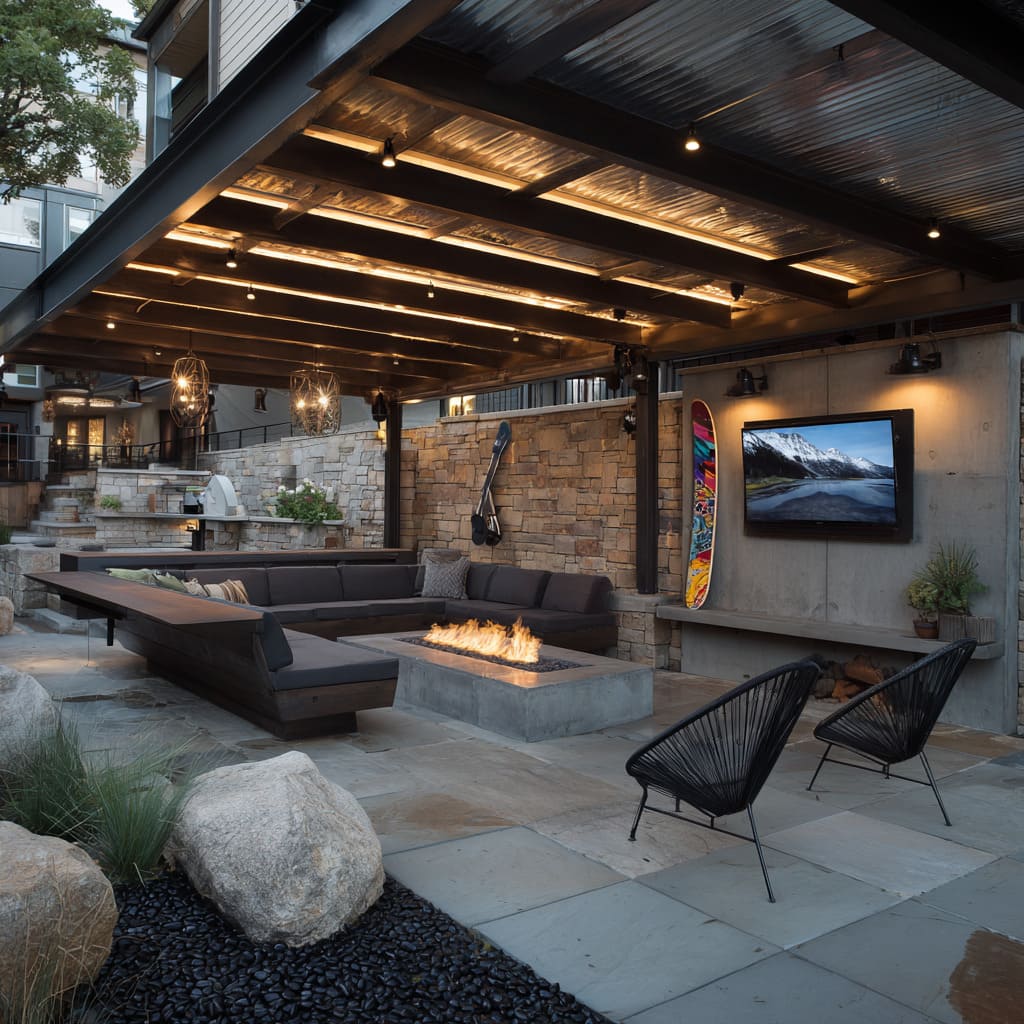 Most outdoor mancave ideas rely on a narrow material palette handled with care. Reclaimed planks, brushed concrete, or dark steel panels create the foundation.