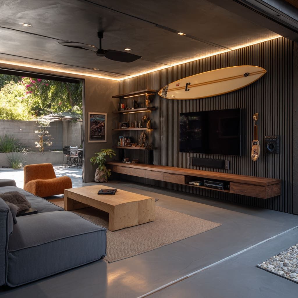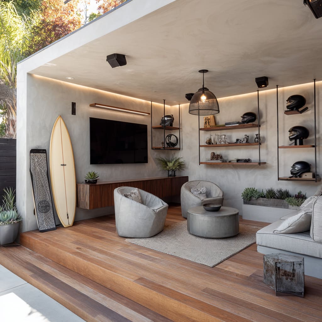 A key shift in backyard man cave ideas is how collections are presented. Sports gear, musical instruments, or memorabilia are treated as sculptural composition, not clutter.