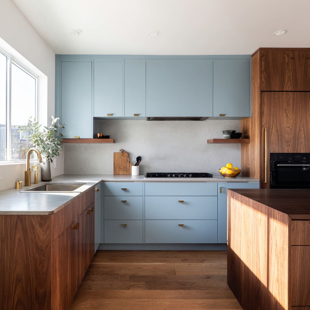 This is why wood lowers paired with calm uppers often look “lived-in but still neat” without relying on constant styling.