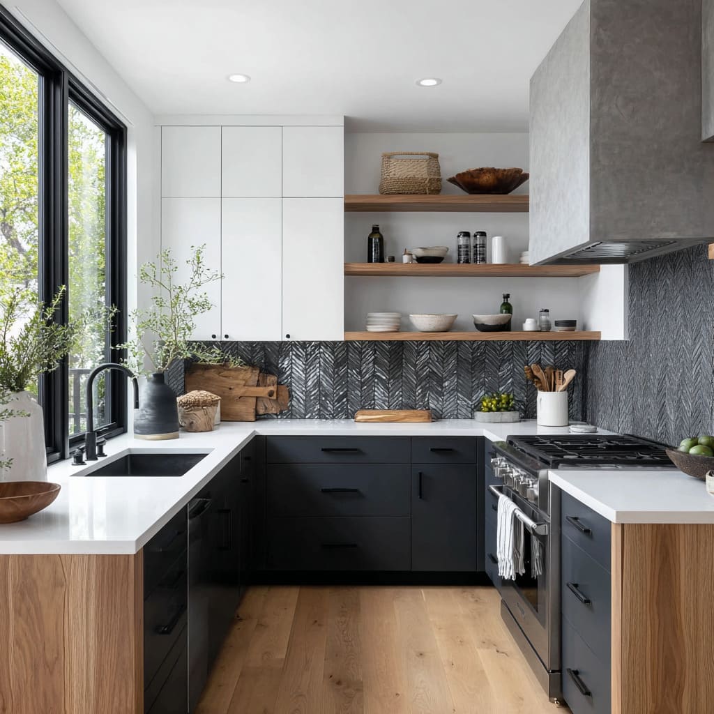 A kitchen looks finished when each tone has a job and that job is repeated in a controlled way. This is the hidden upgrade from basic 2-tone kitchen ideas: the room’s design repeats the second tone in a few strategic forms, so the split feels authored.